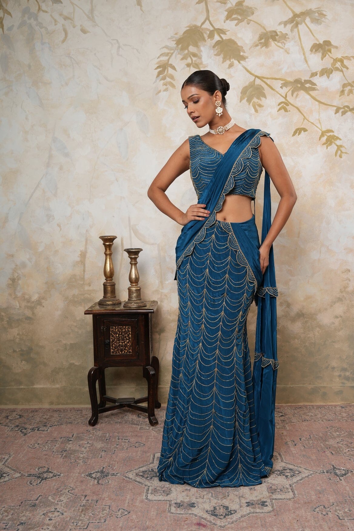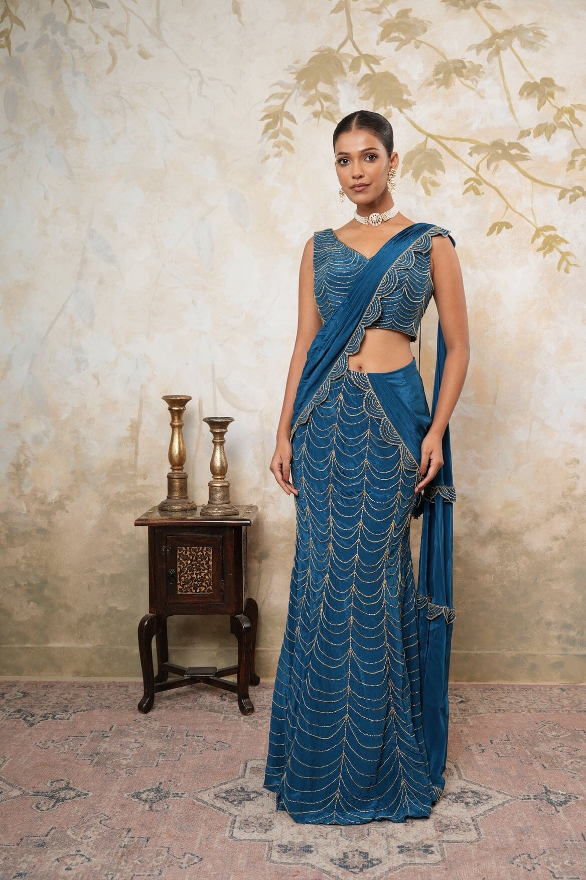 Blue & Gold Saree Set