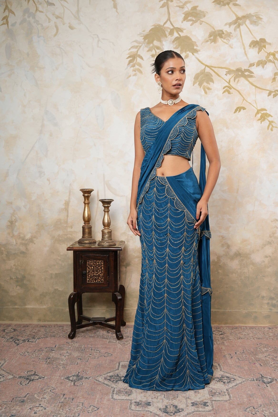 Rosebud Drape Saree Set