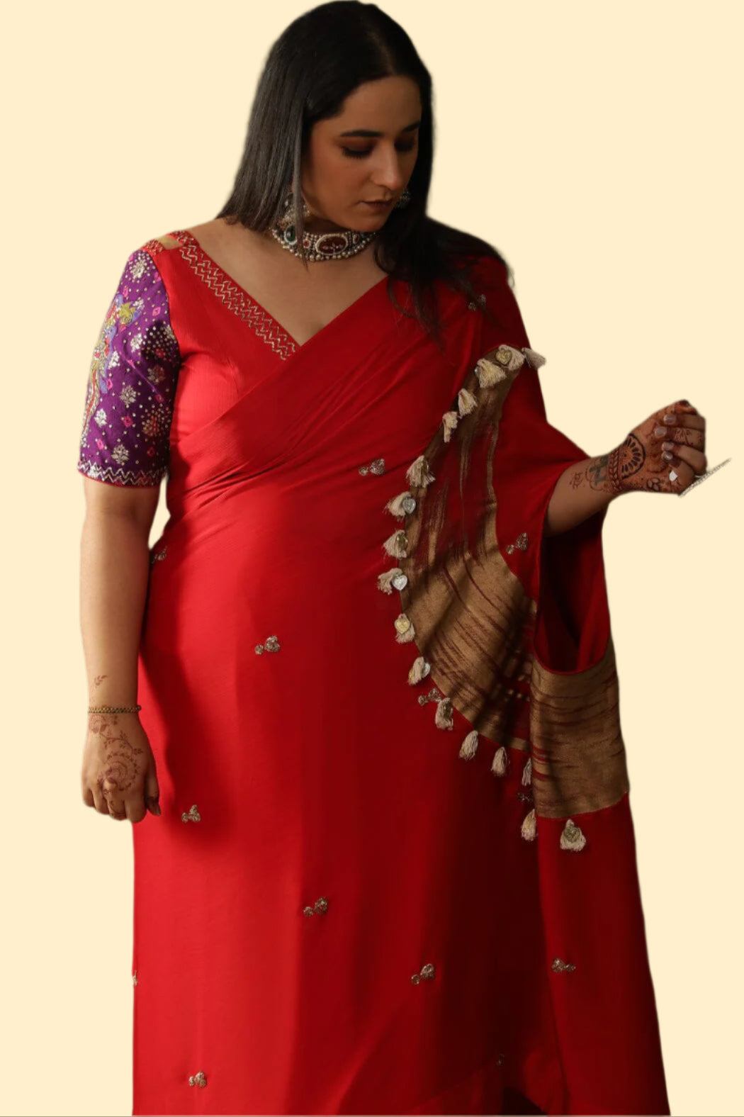 Ivory & Red Saree Set