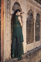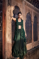 Green embroidered jacket, choli and embroidered pants set. Be the picture of sophistication in this stunning set, boasting intricate embroidery and a gorgeous green color that evokes lush gardens and luxurious interiors. You'll look and feel effortlessly elegant in any setting.