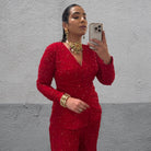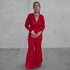 Red Hand Embroidered Short Kurta with loose-fitted sharara pants.