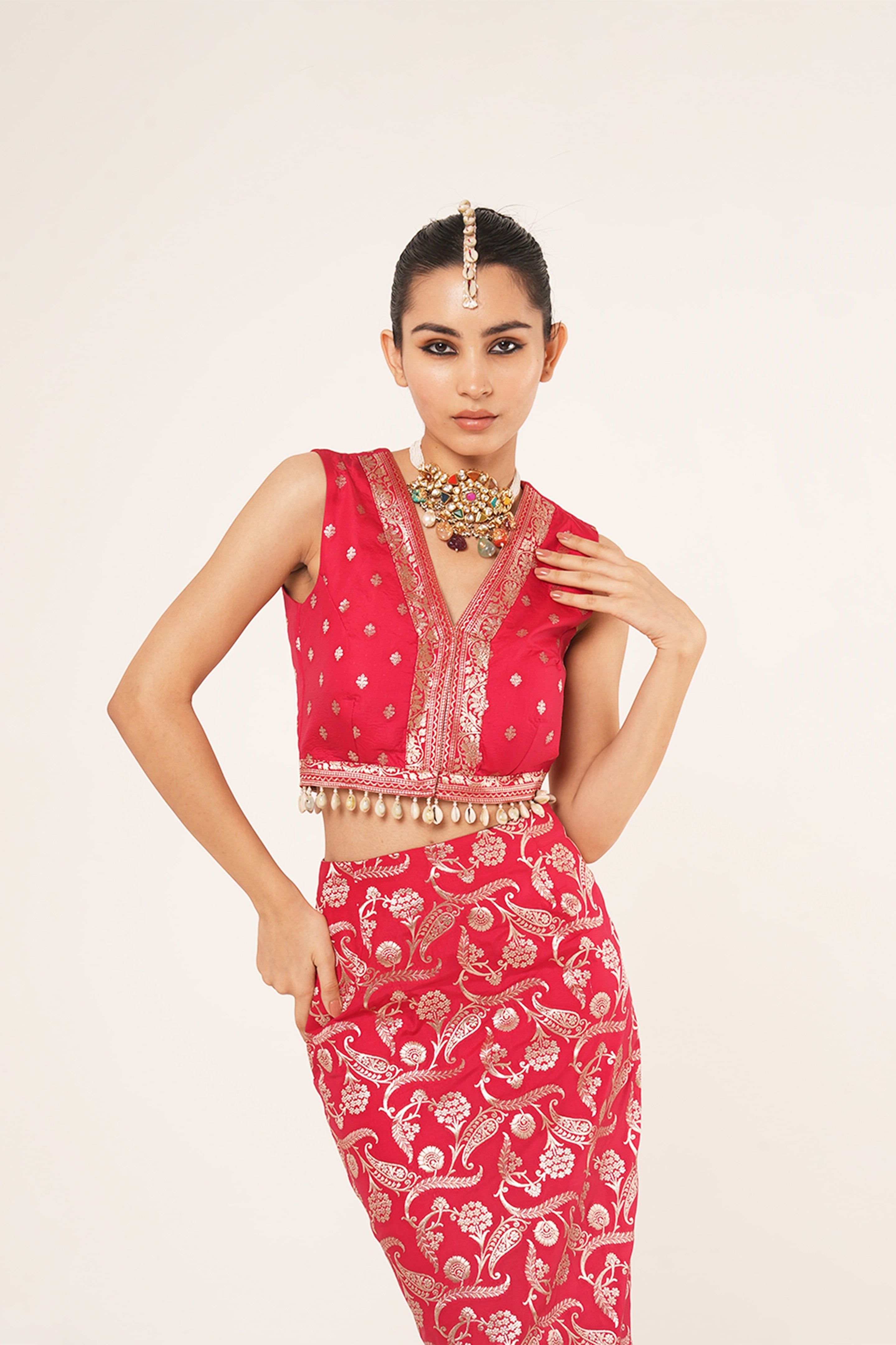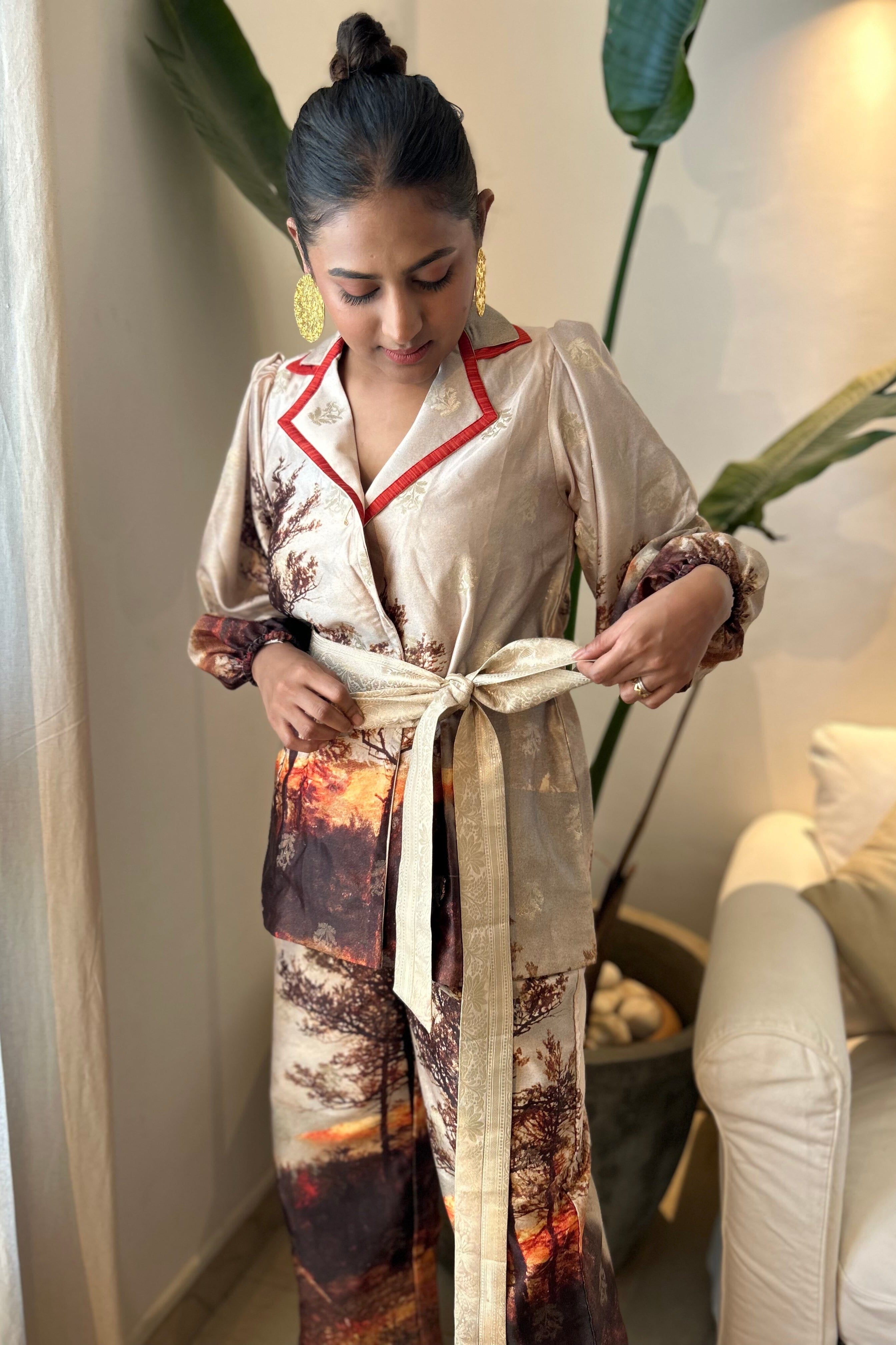 Shriya Singhi is a label from Varanasi. All their pieces are created using Banarsi Silk, a fine variant of Silk originating from the city of Banaras. The making of the Banarasi Silk at Shriya Singhi is a beautiful journey that unfolds as the fabric is created from scratch by the artisans of Banaras. Every piece ordered is meticulously handcrafted creating a unique one-of-a-kind piece.