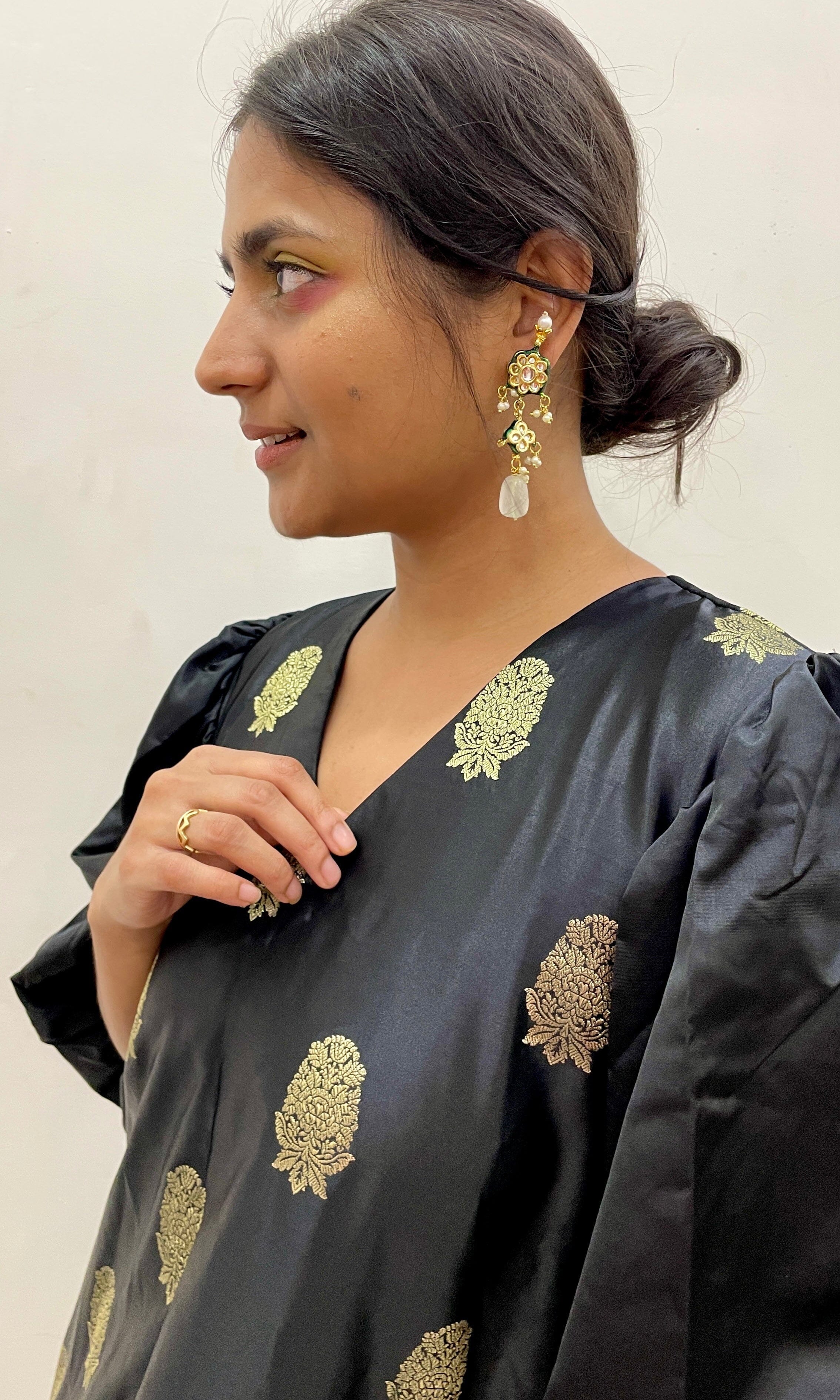 Shriya Singhi is a label from Varanasi. All their pieces are created using Banarsi Silk, a fine variant of Silk originating from the city of Banaras. The making of the Banarasi Silk at Shriya Singhi is a beautiful journey that unfolds as the fabric is created from scratch by the artisans of Banaras. Every piece ordered is meticulously handcrafted creating a unique one-of-a-kind piece.