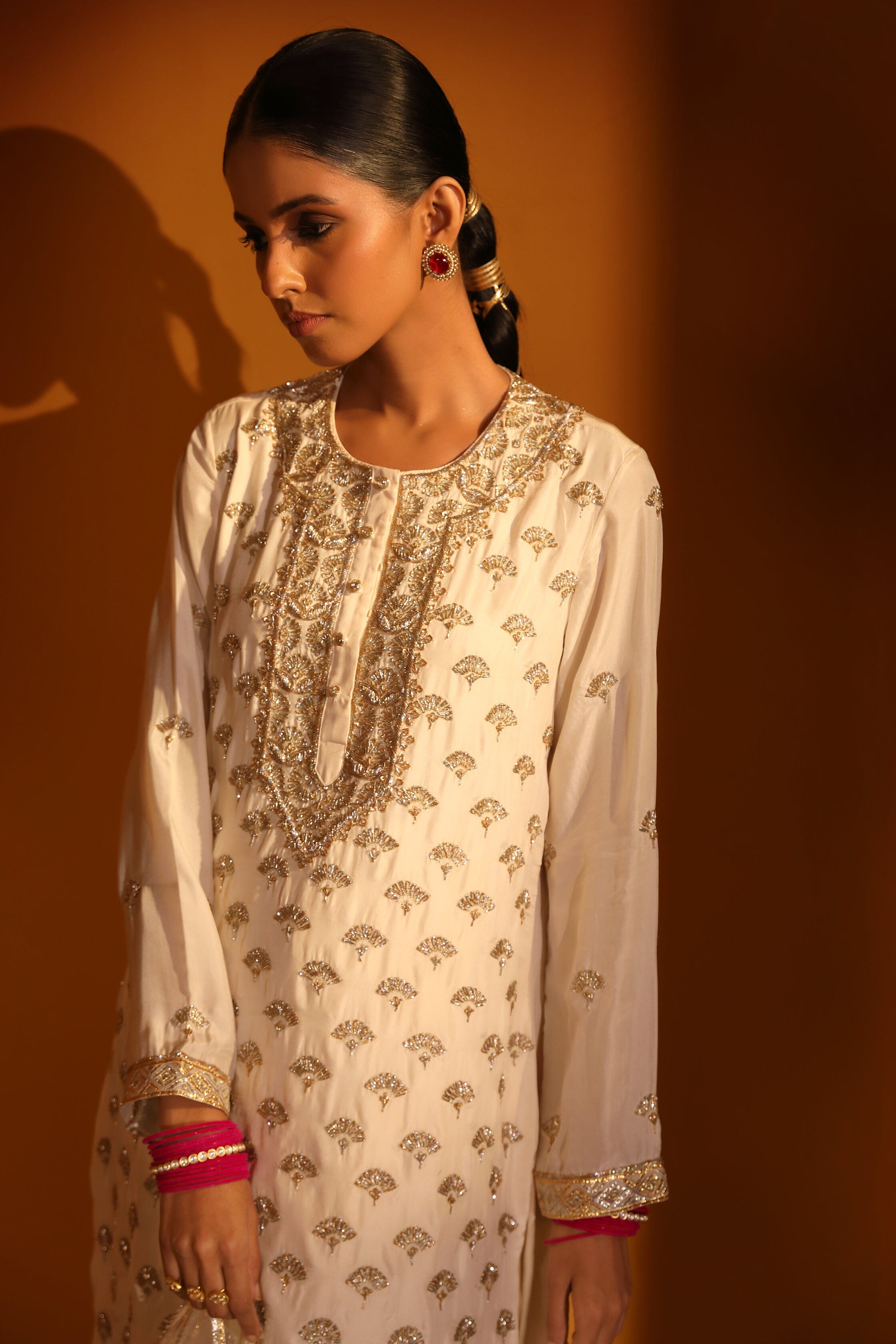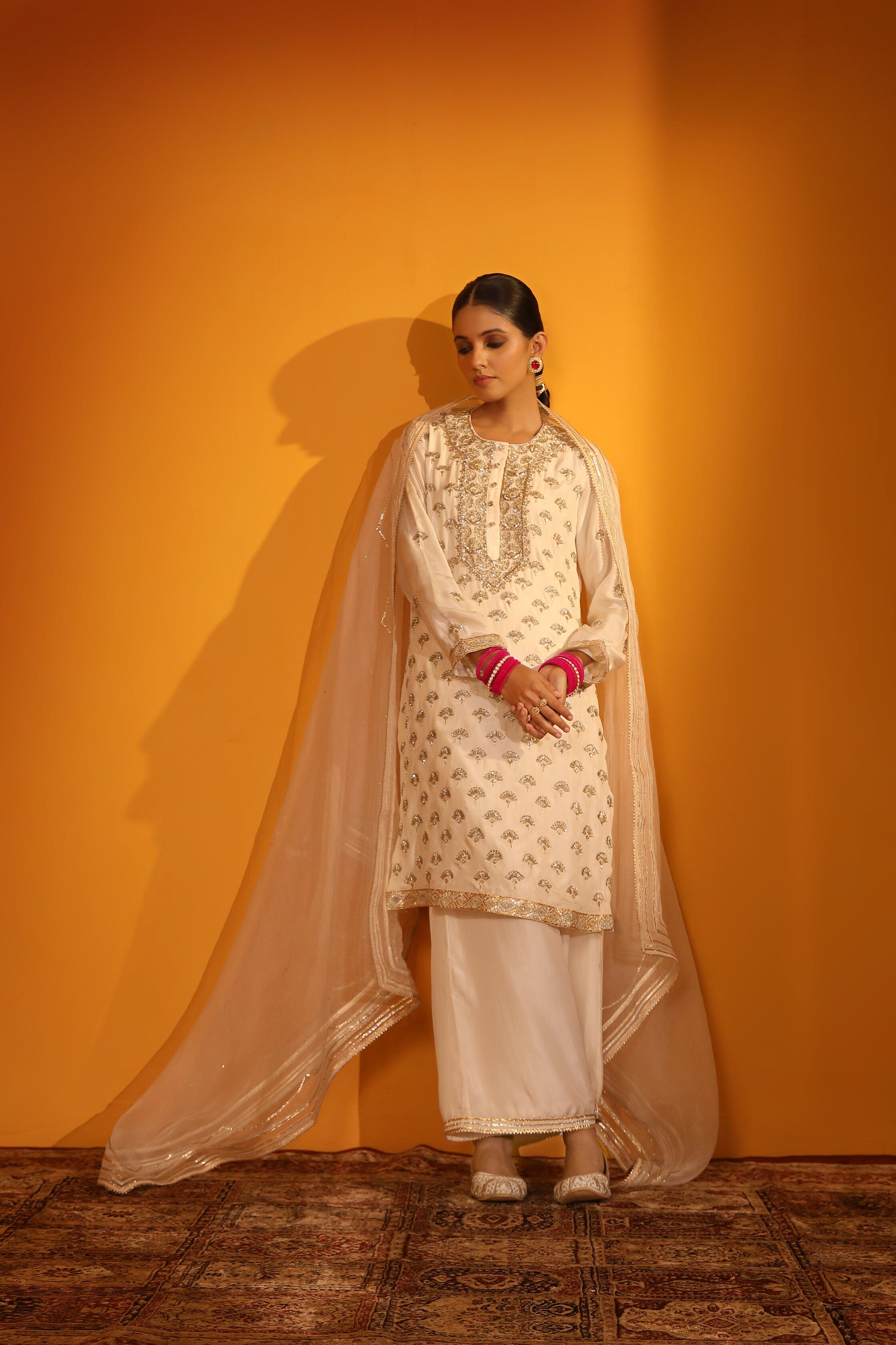 IVORY EMBELLISHED KURTA SET WITH PANTS AND DUPATTA