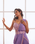 Lavender Pre Draped Saree With Belt