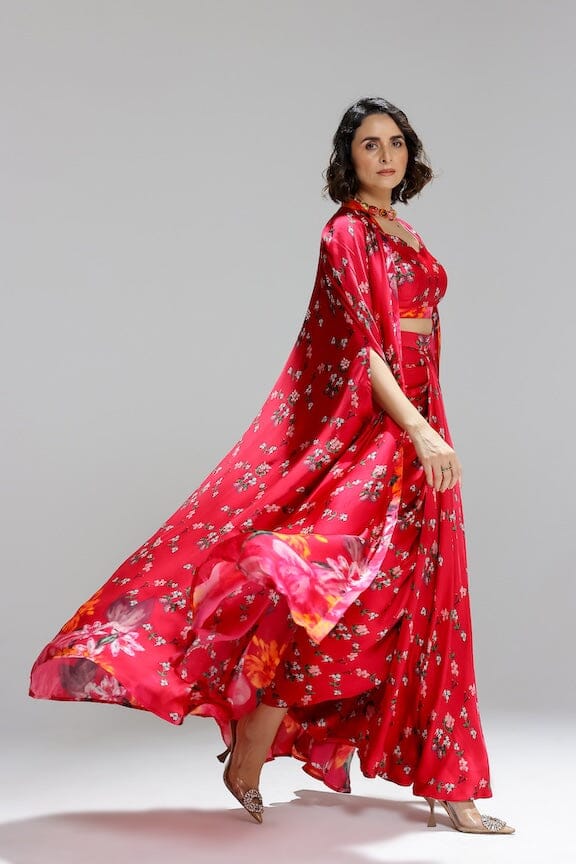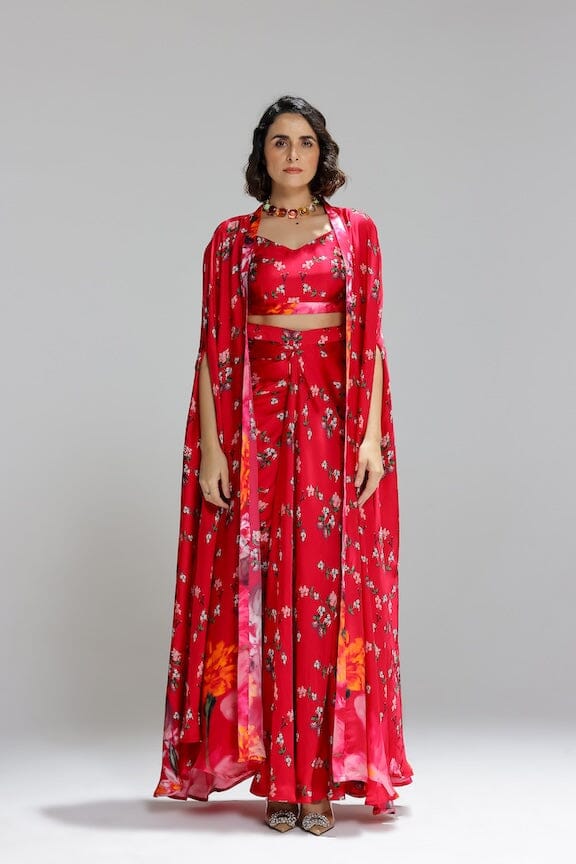 Make a statement in this sexy three-piece bustier set, featuring a high-waisted skirt with asymmetric draping and a fitted bustier blouse. Perfect for summer evenings, the optional floralia shrug elevates the look for a chic, head-turning ensemble. Comfortable yet glamorous, it’s ideal for festive or evening occasions.