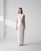 Draped detailing at the front and back Zip closure at the back Slit at the back Full plain-viscose lining.