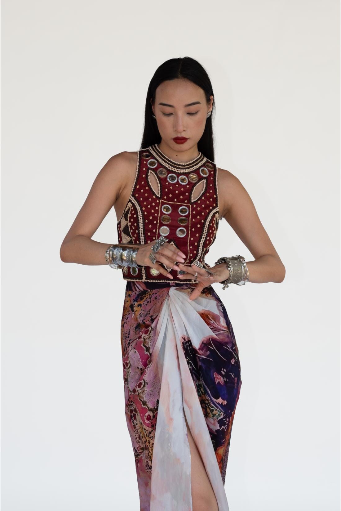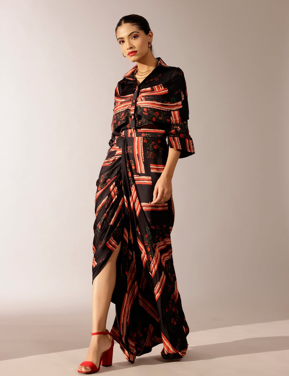 IVY GARDENI KNOT SHIRT WITH DRAPED SKIRT