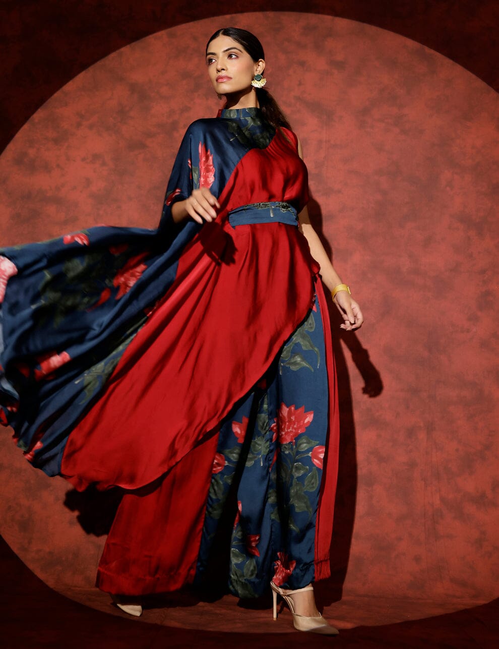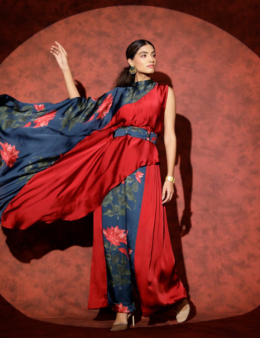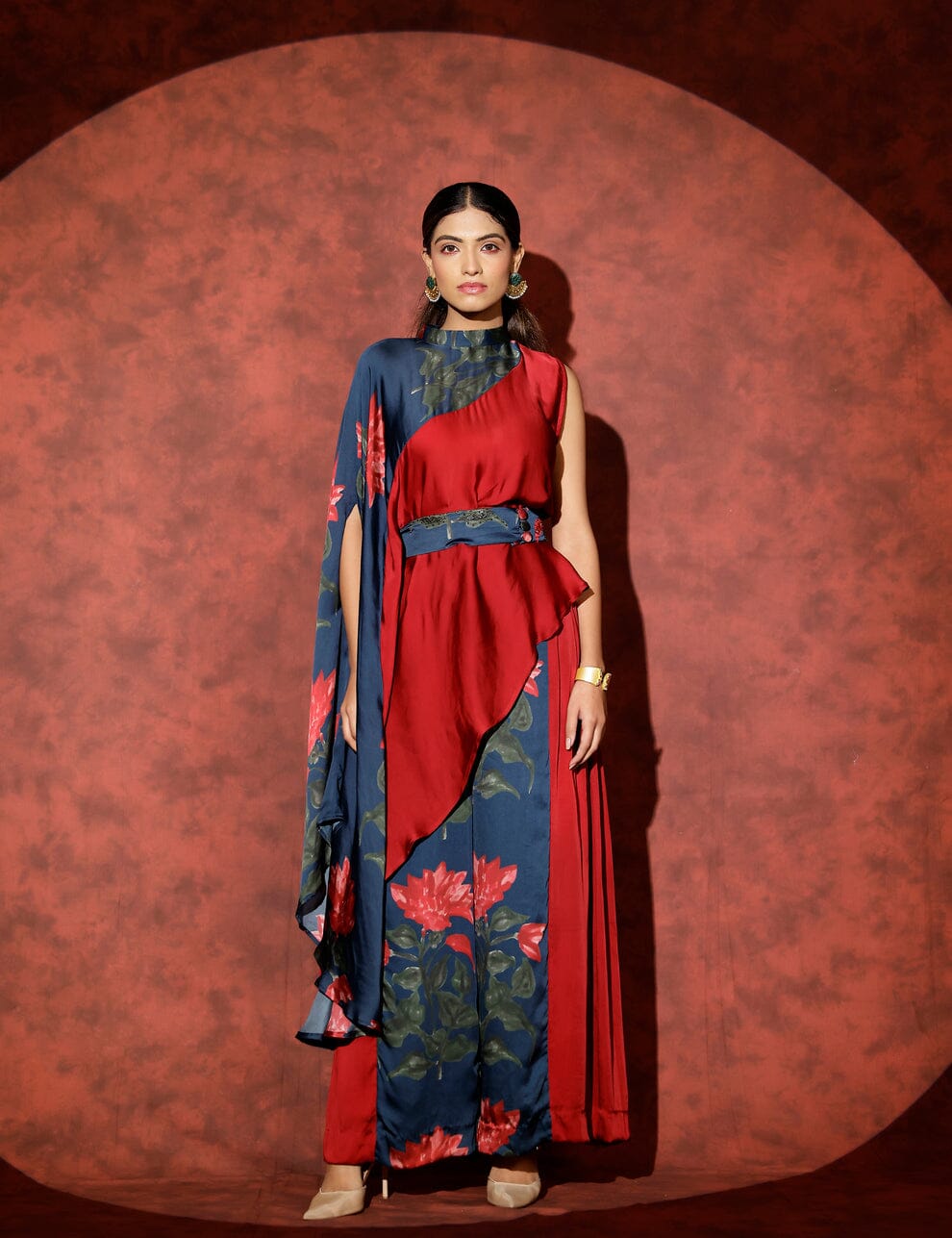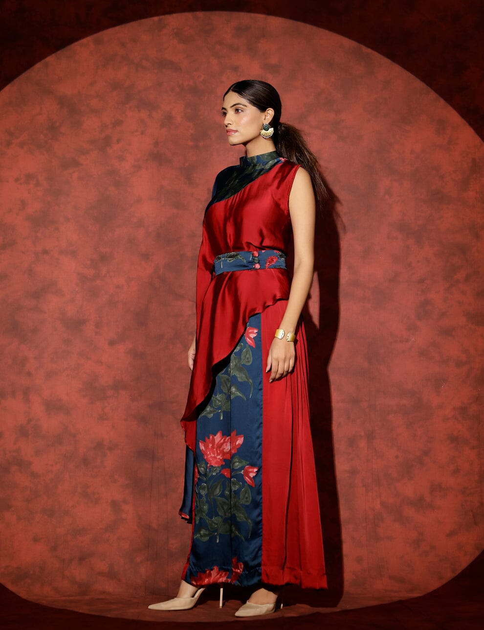 Neelam Color Block Asymmetric Top Paired With Side Pleated Pants
