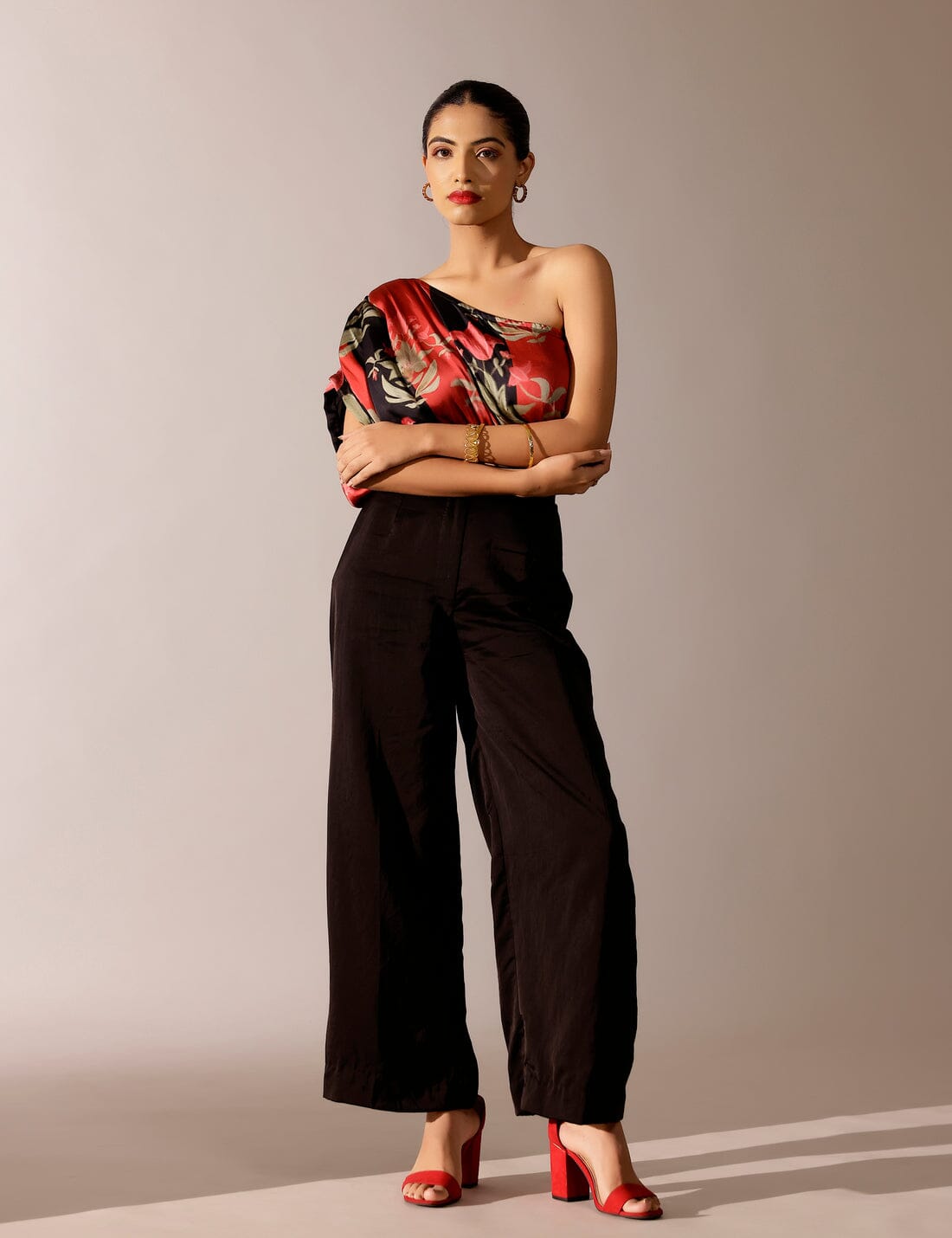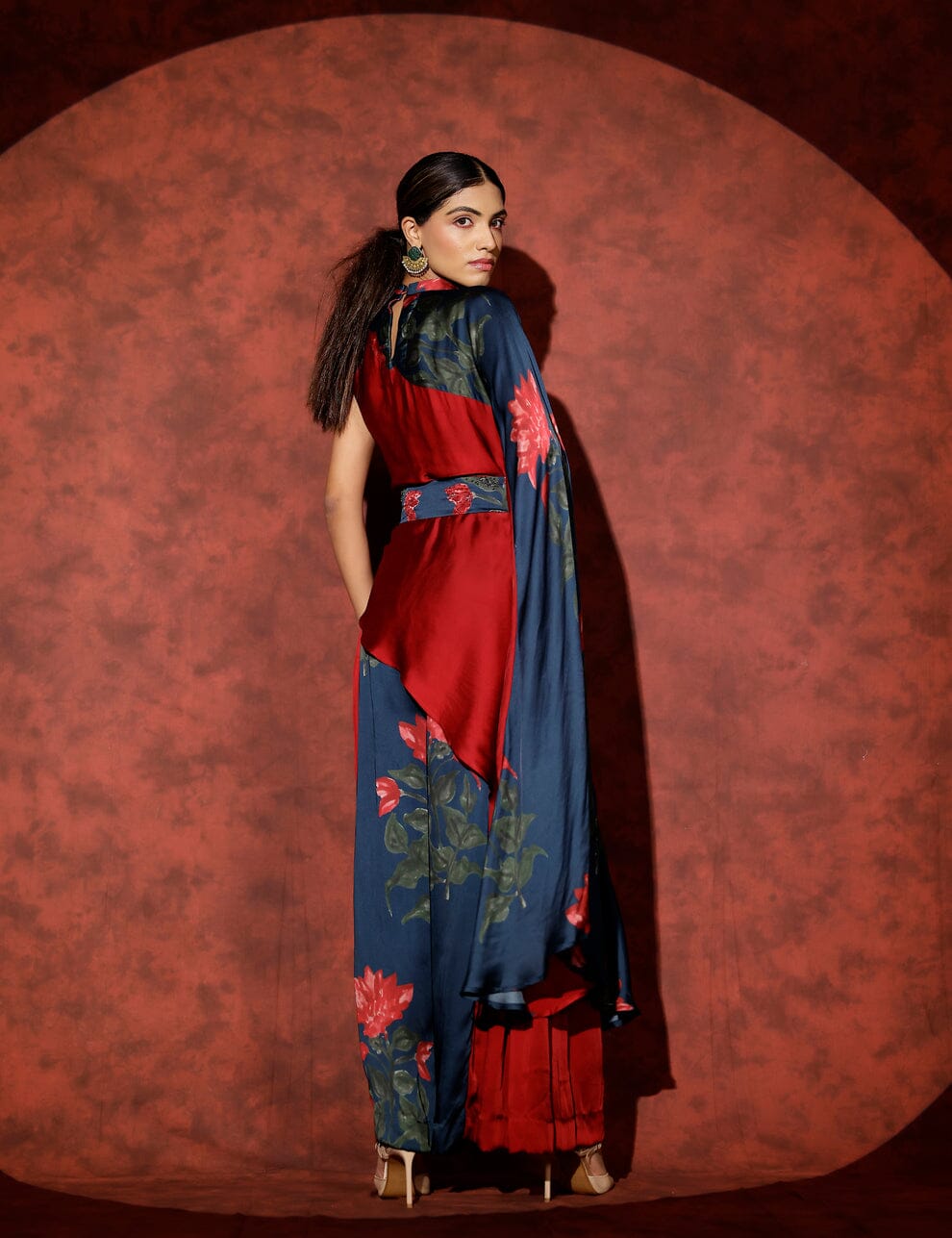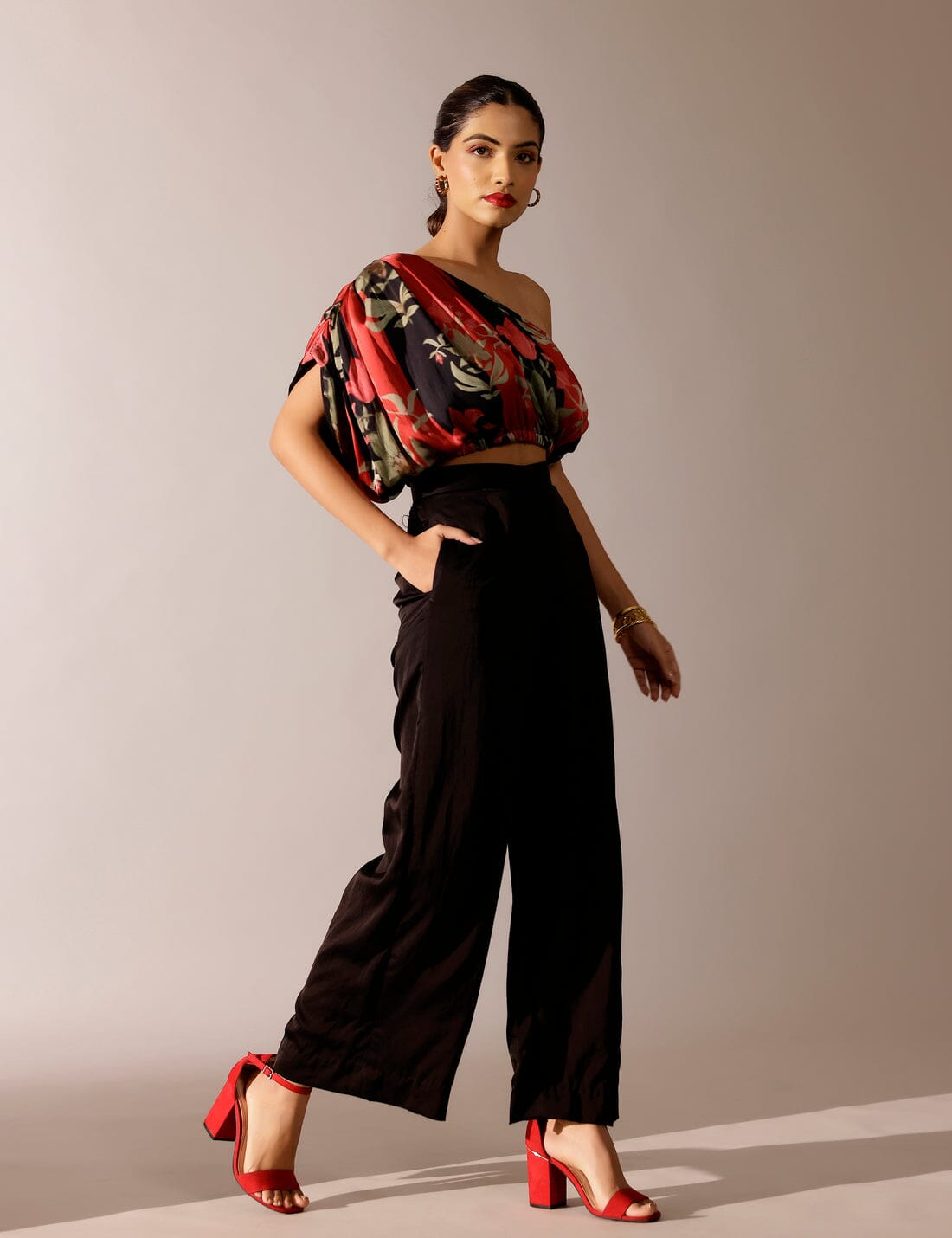 Neelam Color Block Asymmetric Top Paired With Side Pleated Pants