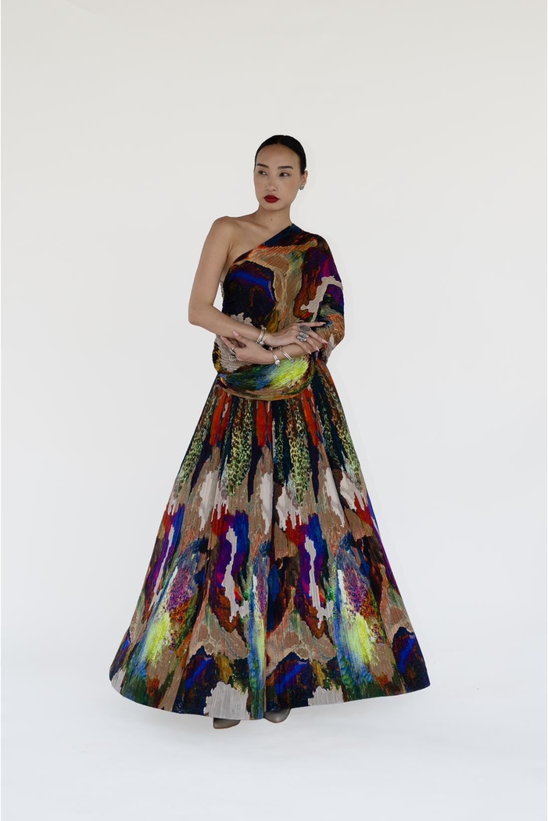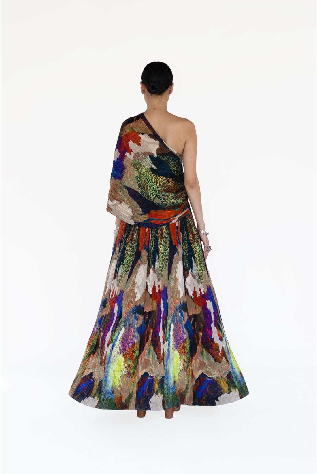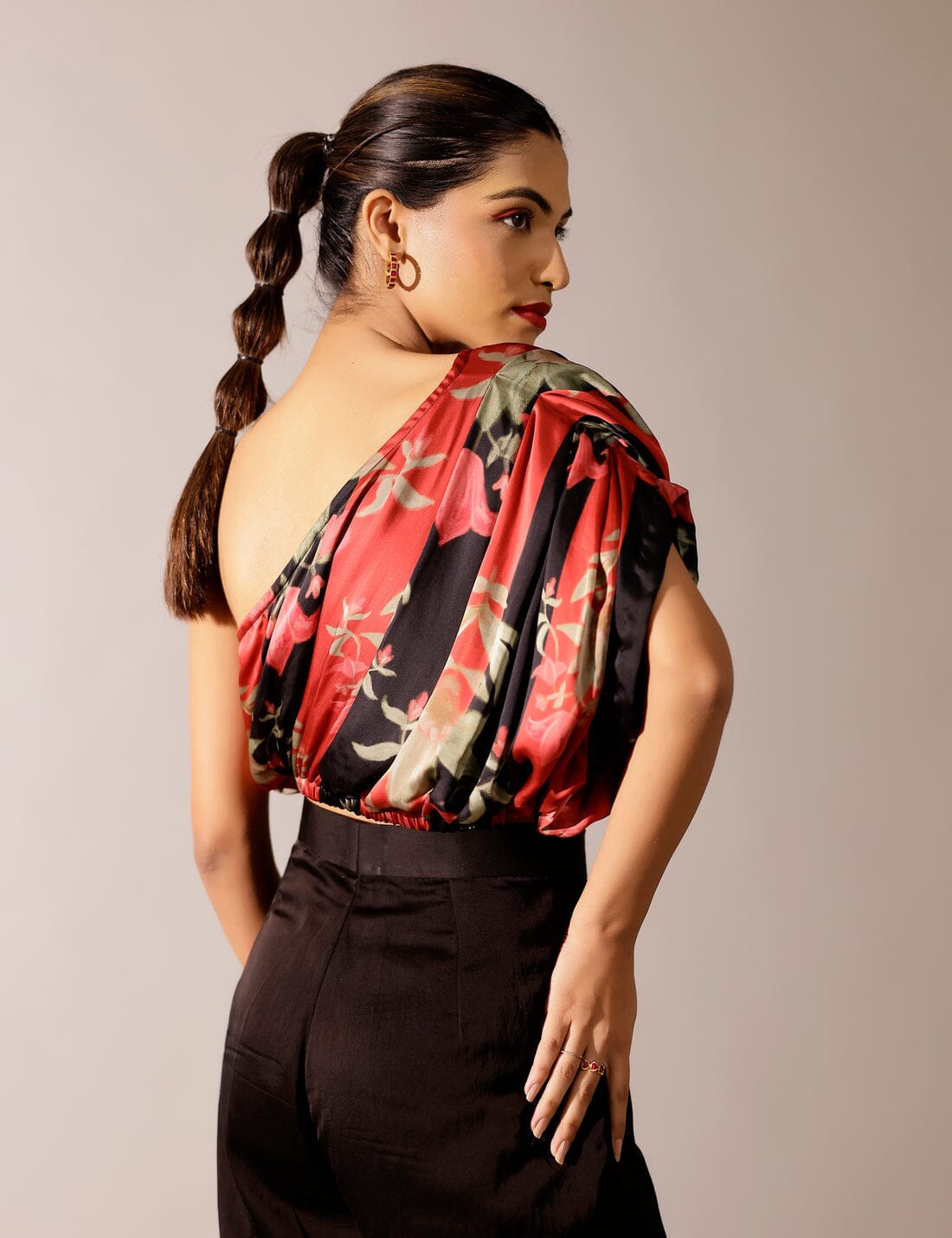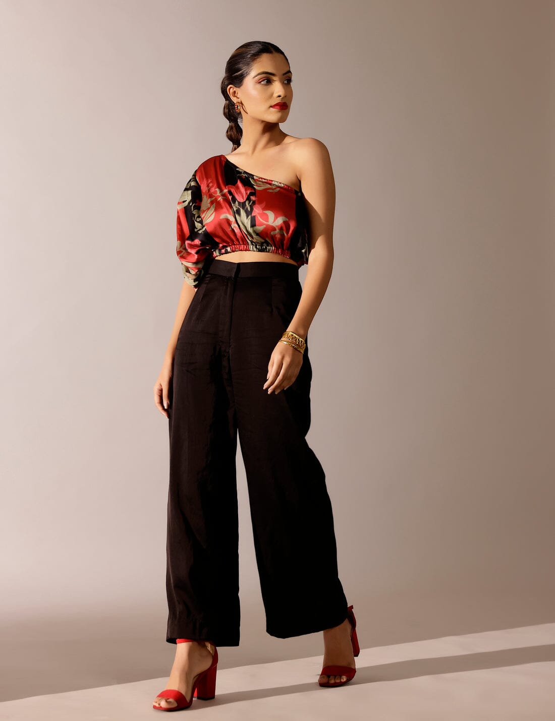 Neelam Color Block Asymmetric Top Paired With Side Pleated Pants