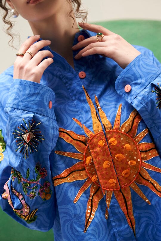 Cobalt Blue Sun Printed thread Bedas Seq Detailing Shirt.