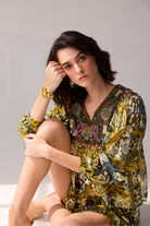 Add more to your sparkle with our printed peplum blouse, featuring intricate thread and sequin detailing at the yoke.