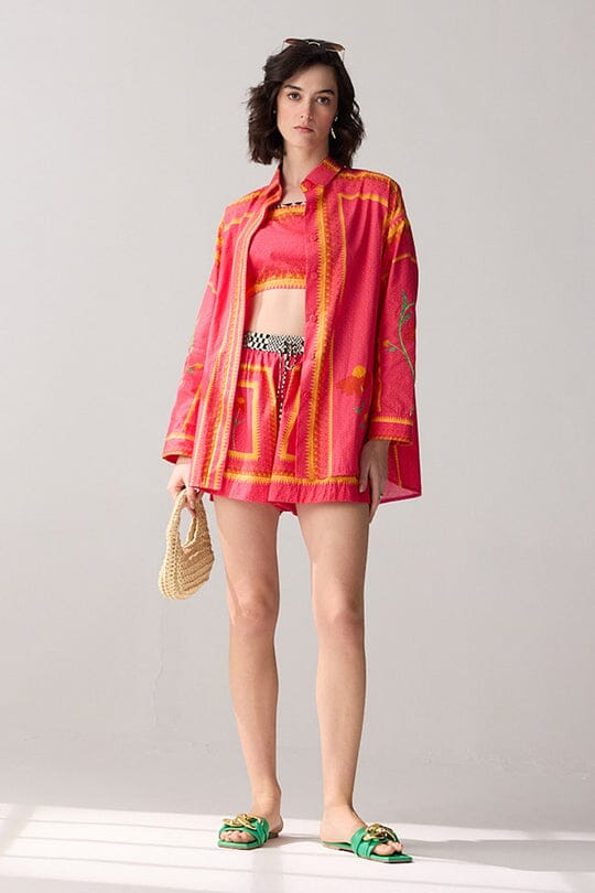 Go bold with our pink printed oversized shirt - a statement piece that combines comfort with contemporary flair.