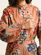The shirt comes in a relaxed silhouette featuring fagoting detail on the shoulder. It has a drooping shoulder, a mandarin collar with tiny gathered detail that's not to be missed! This can be styled in multiple ways.