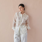 Finished with a classic cuff and delicate shell buttons, this shirt strikes a balance between softness and structure—perfect for adding a touch of artistry to everyday dressing.