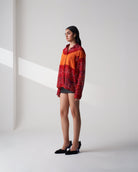 Traditional Odhni shirt Spread collar Button closure Sleeves with double-button cuffs Tie and dye detail all over.