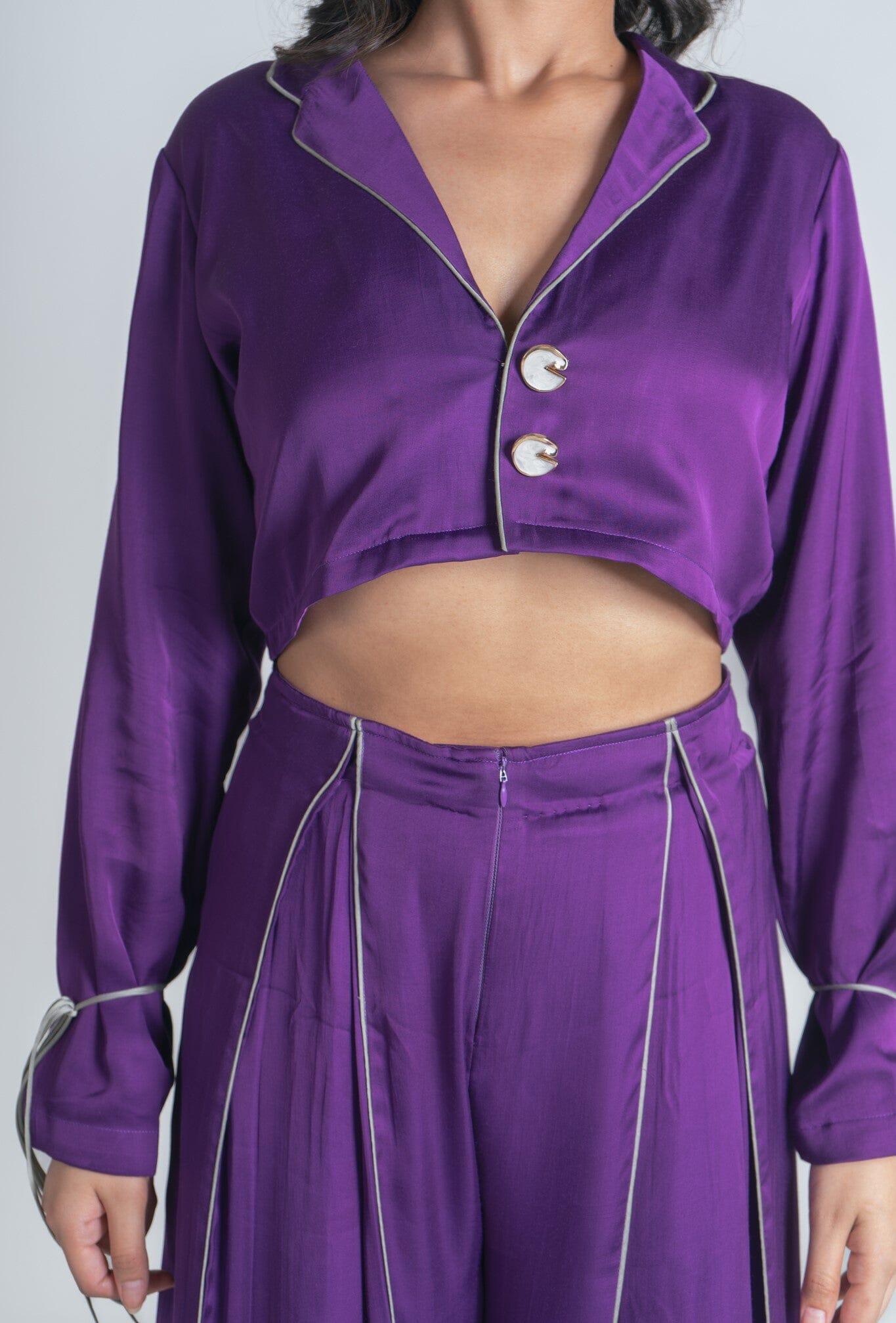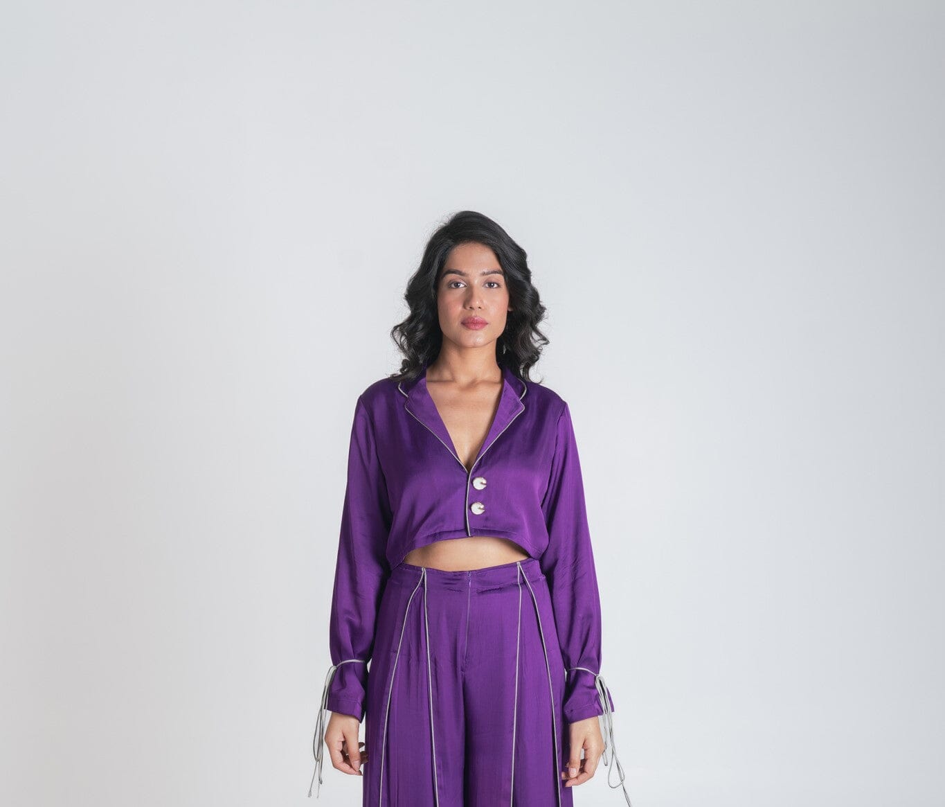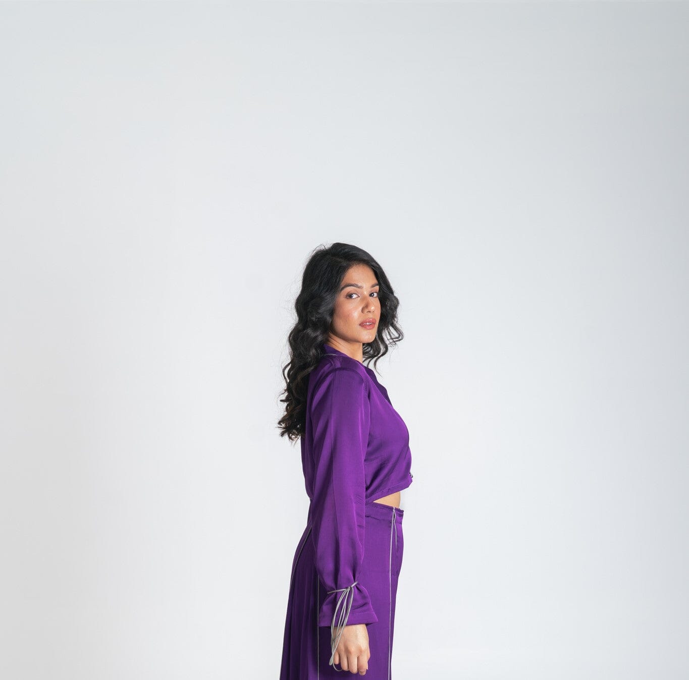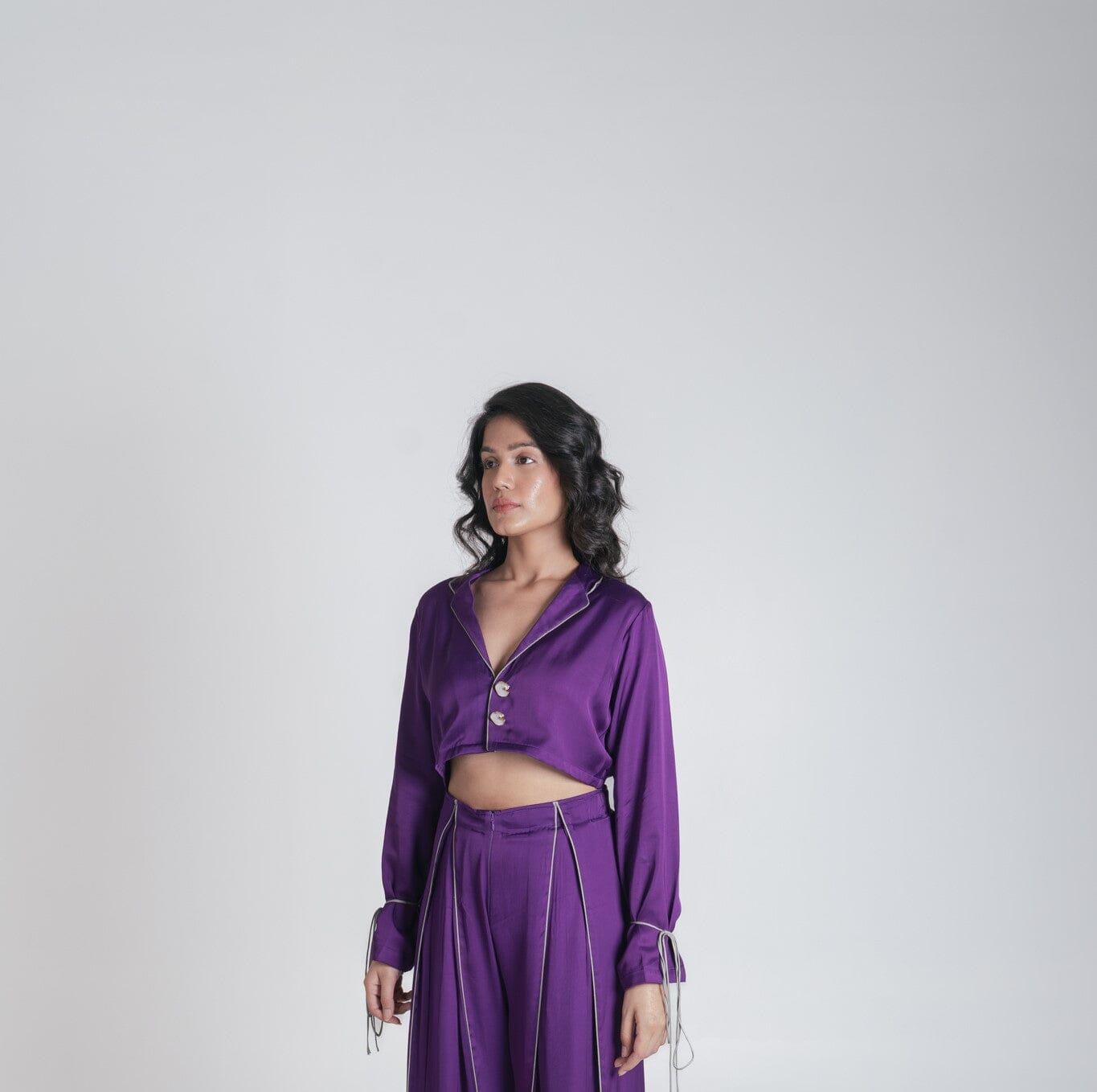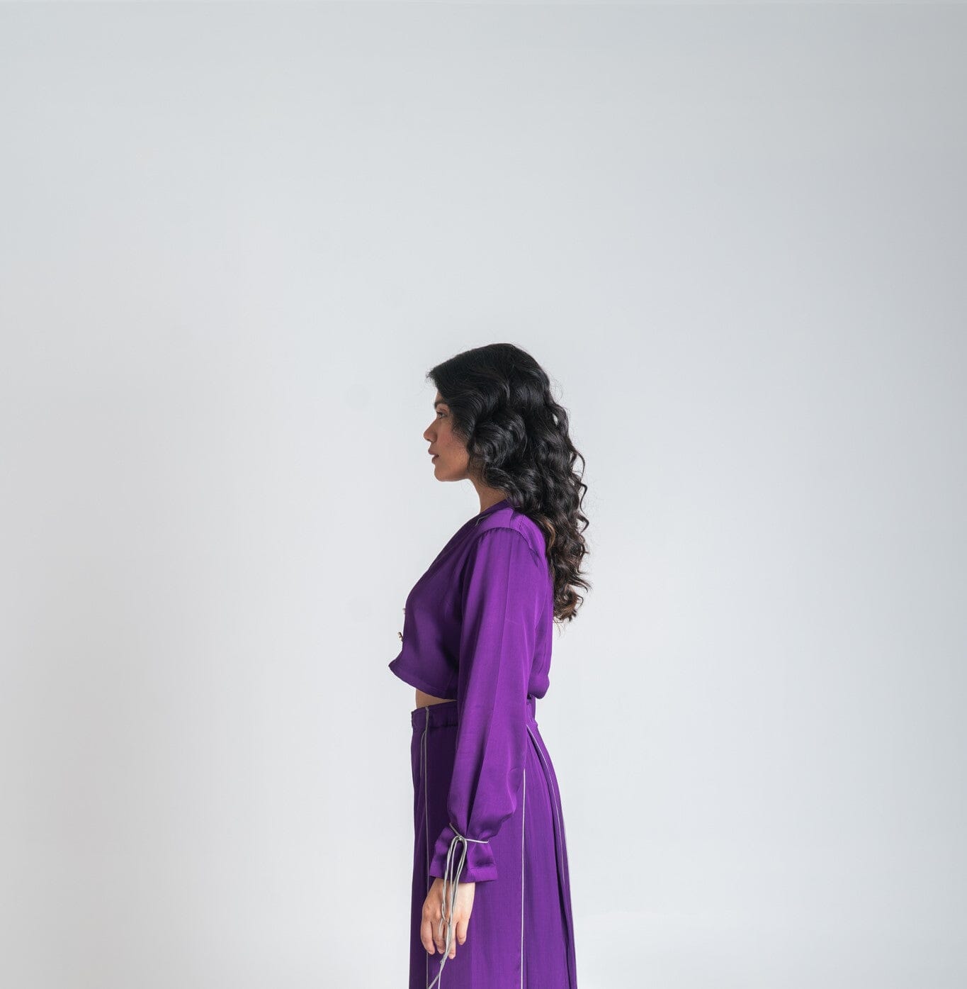 Elevate your fashion game with our Purple full sleeved top. Made with Bemberg Modal Silk fabric, this top features a bold color combination of Purple and Green piping, adding a touch of vibrancy to your wardrobe. With a color-blocked design and butter crepe lining, this top is perfect for any occasion.