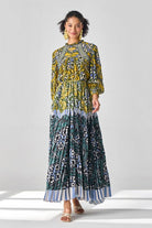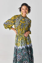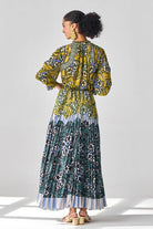 Here's a lovely printed blouse in viscose georgette featuring elegant lace detail ruched sleeves, perfect for a polished yet playful look.