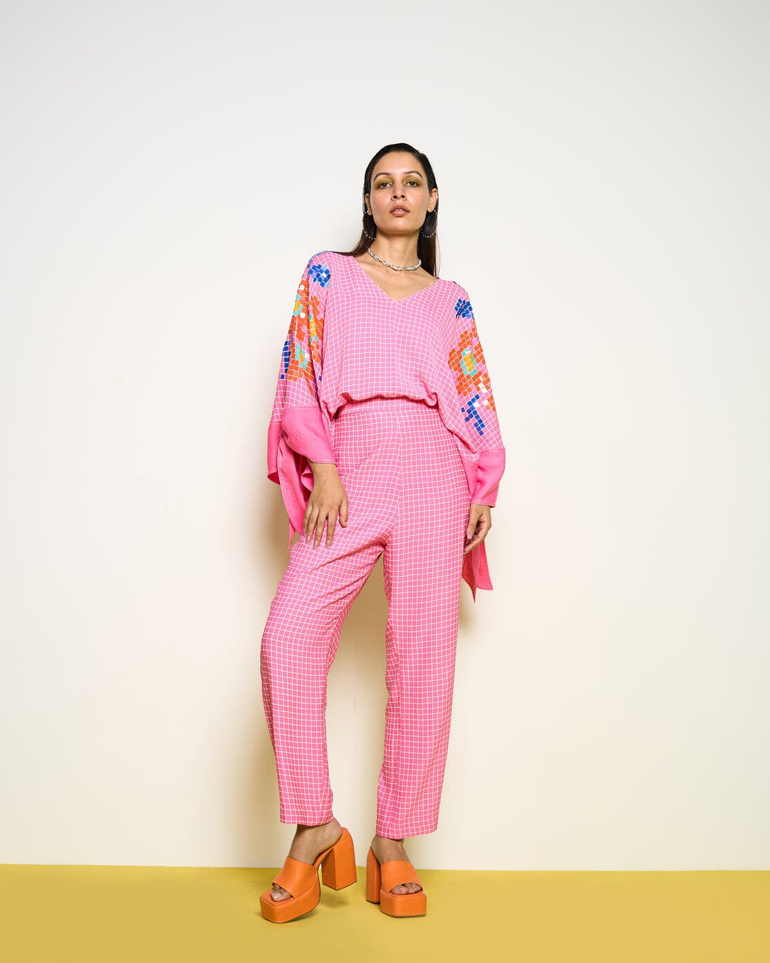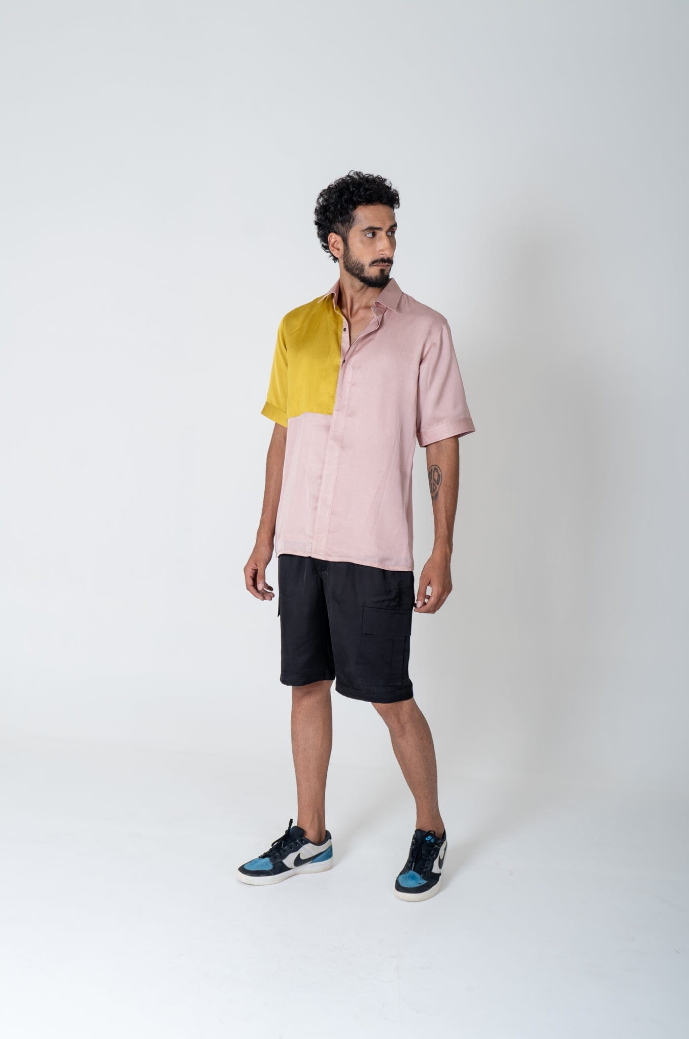 Pink-Yellow Color-Blocked Shirt