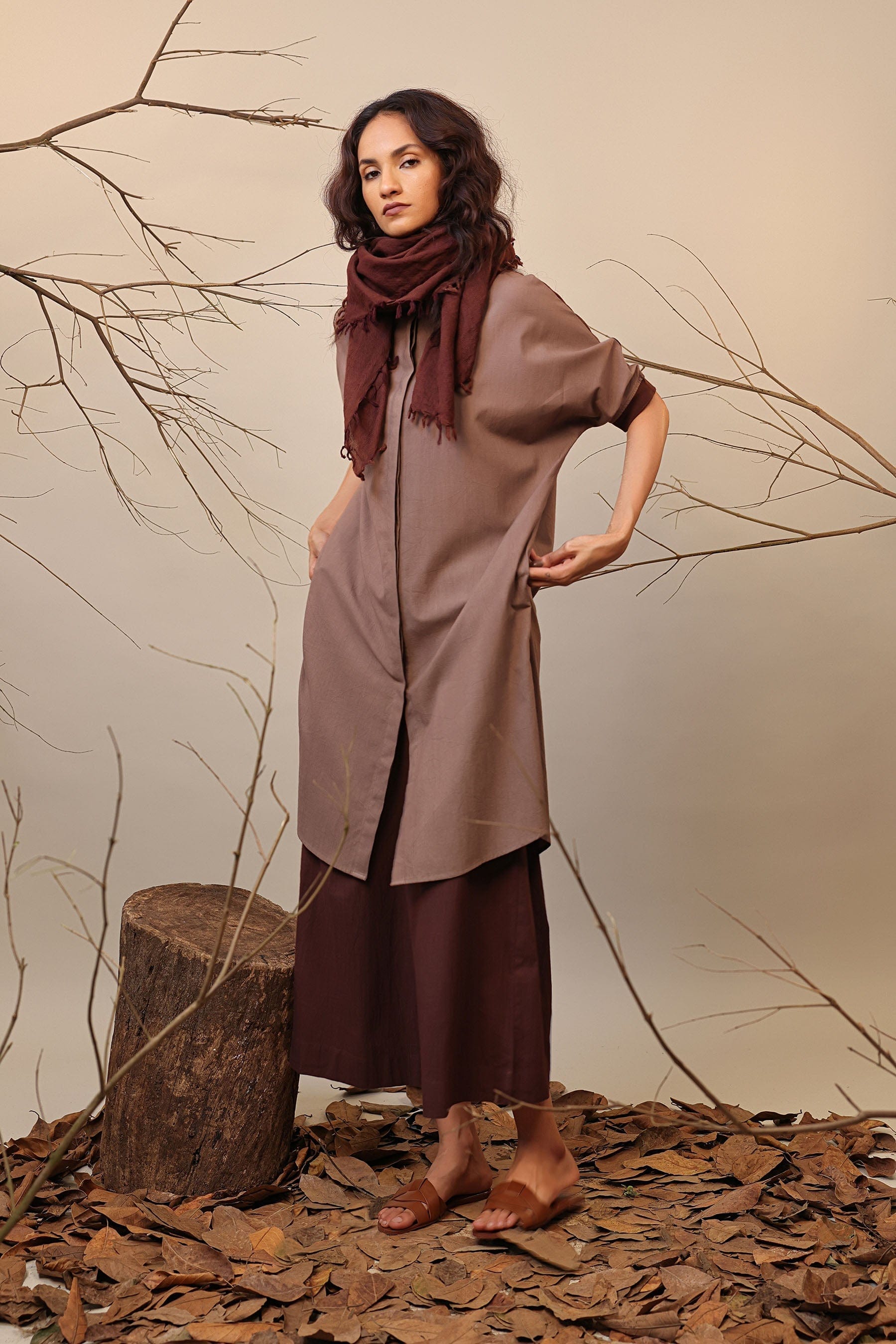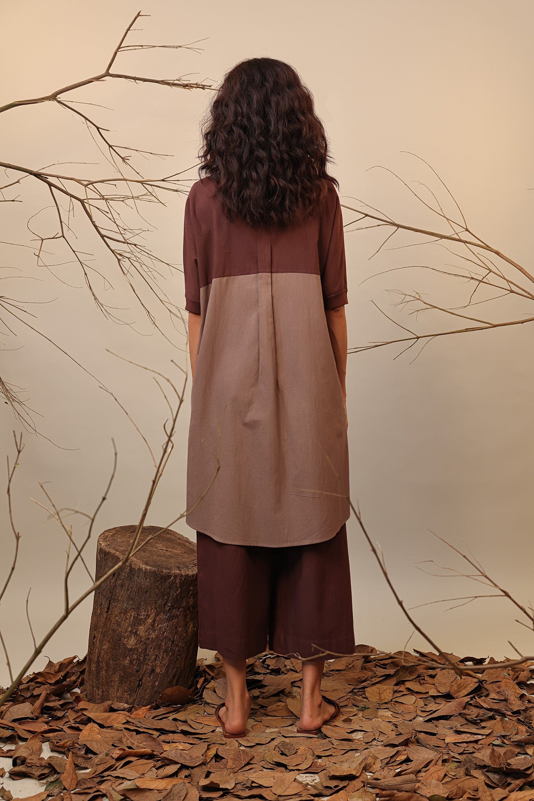 Beige & Brown Shirt Tunic Set (2 PCS)