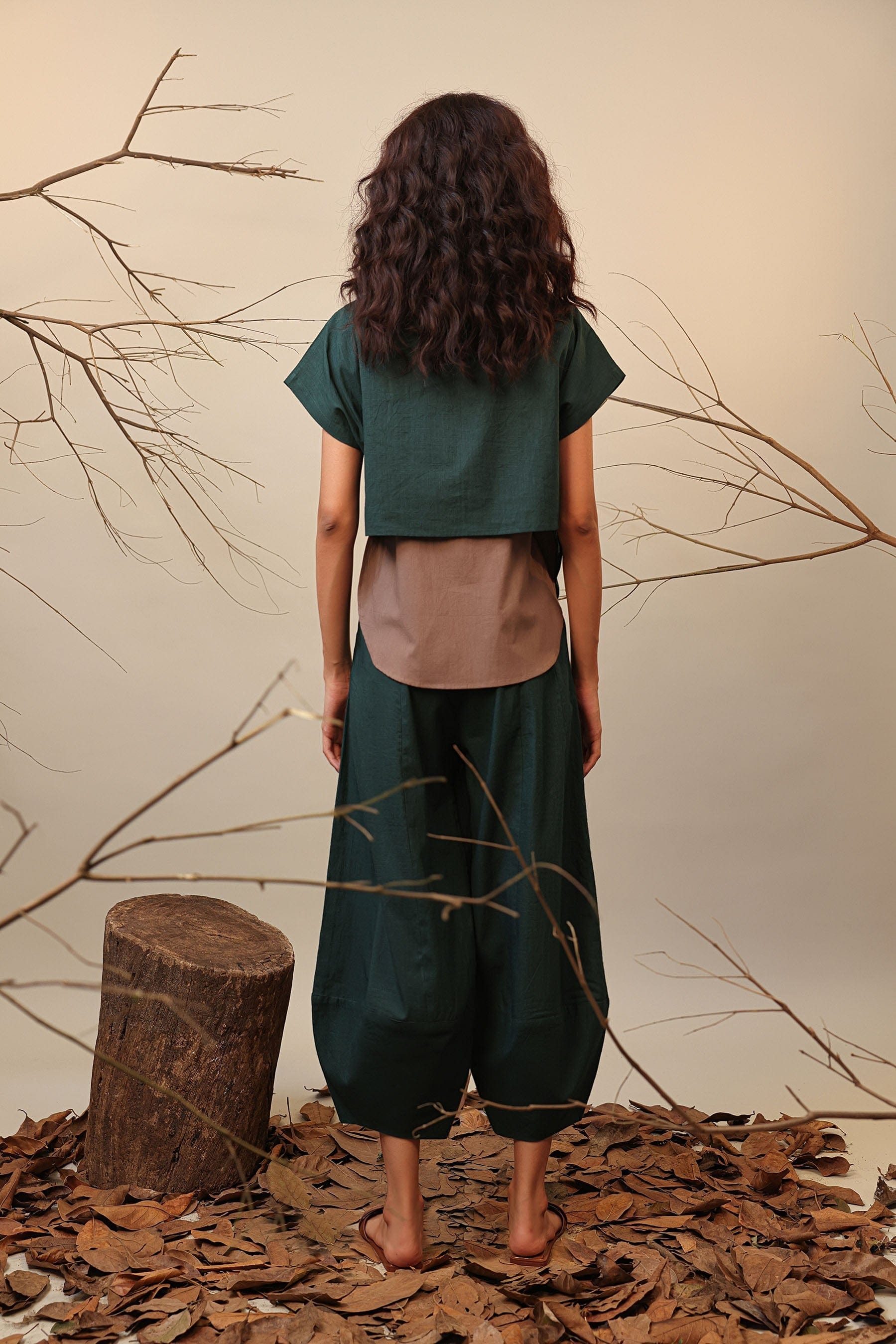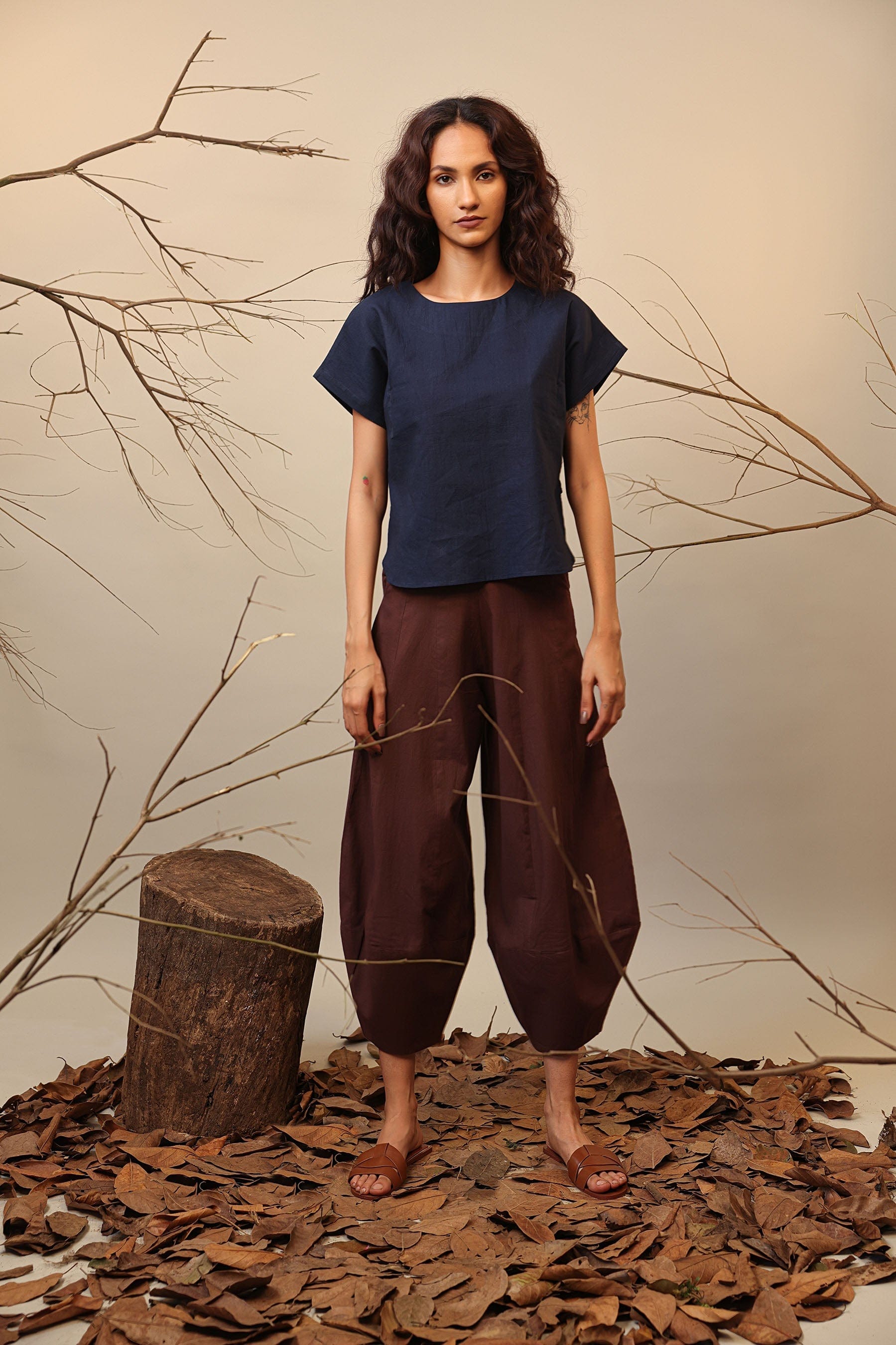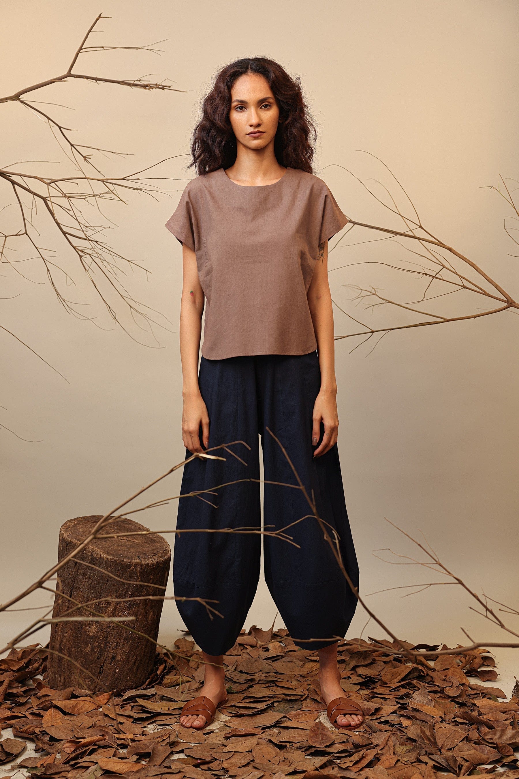 Brown & Blue Shirt Tunic Set (2 PCS)