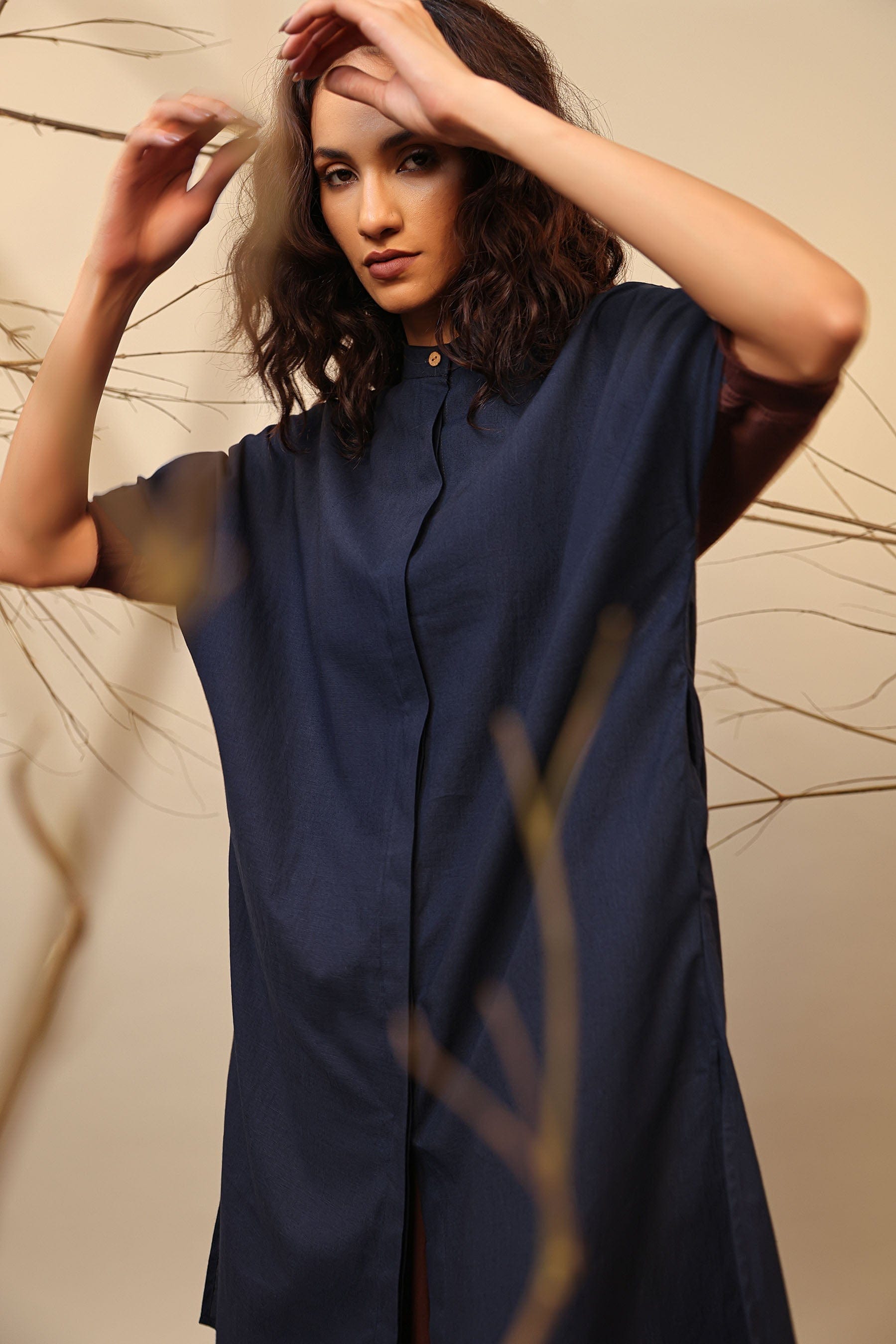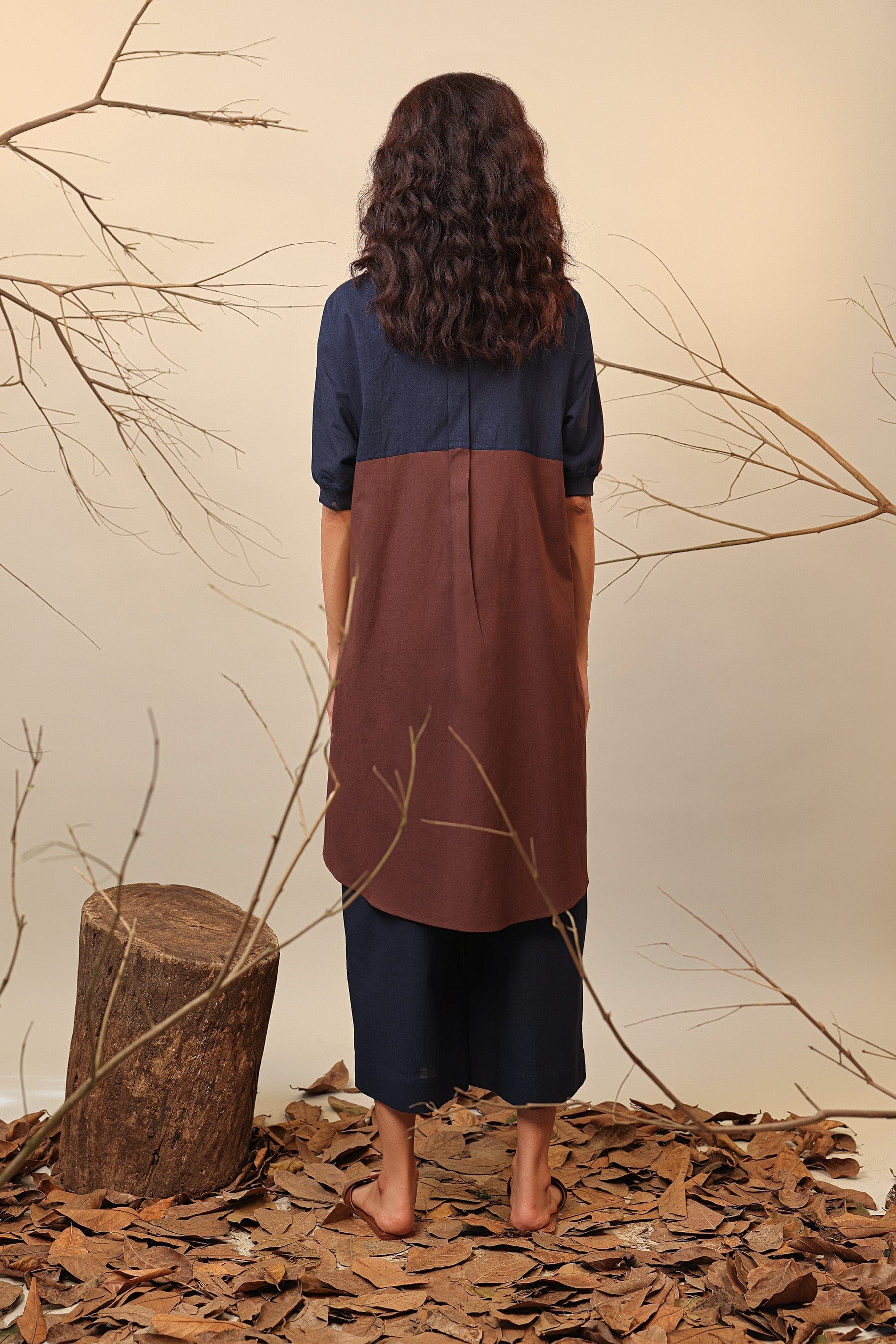 Blue & Brown Shirt Tunic Set (2 PCS)