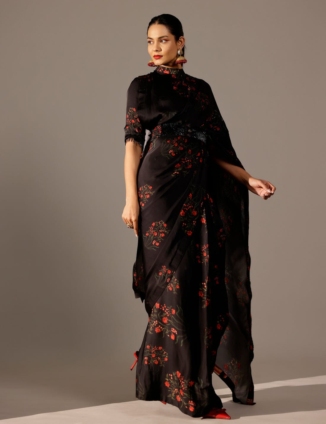 - Style: Draped saree gown with collared palla