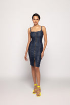 Refined tailoring, perfect pleats, and an eye-catching front zipper. This micro pleated midi dress in denim is an effortlessly stylish addition to any wardrobe.