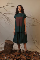 Applique style colour block dress in layers giving skirt and top like feel in one piece. Ribbed colour details on the neckline and side pockets.