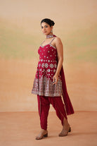Maroon Embroidery Fabric Peplum Kurti, Tulip Salwar and Choker Dupatta