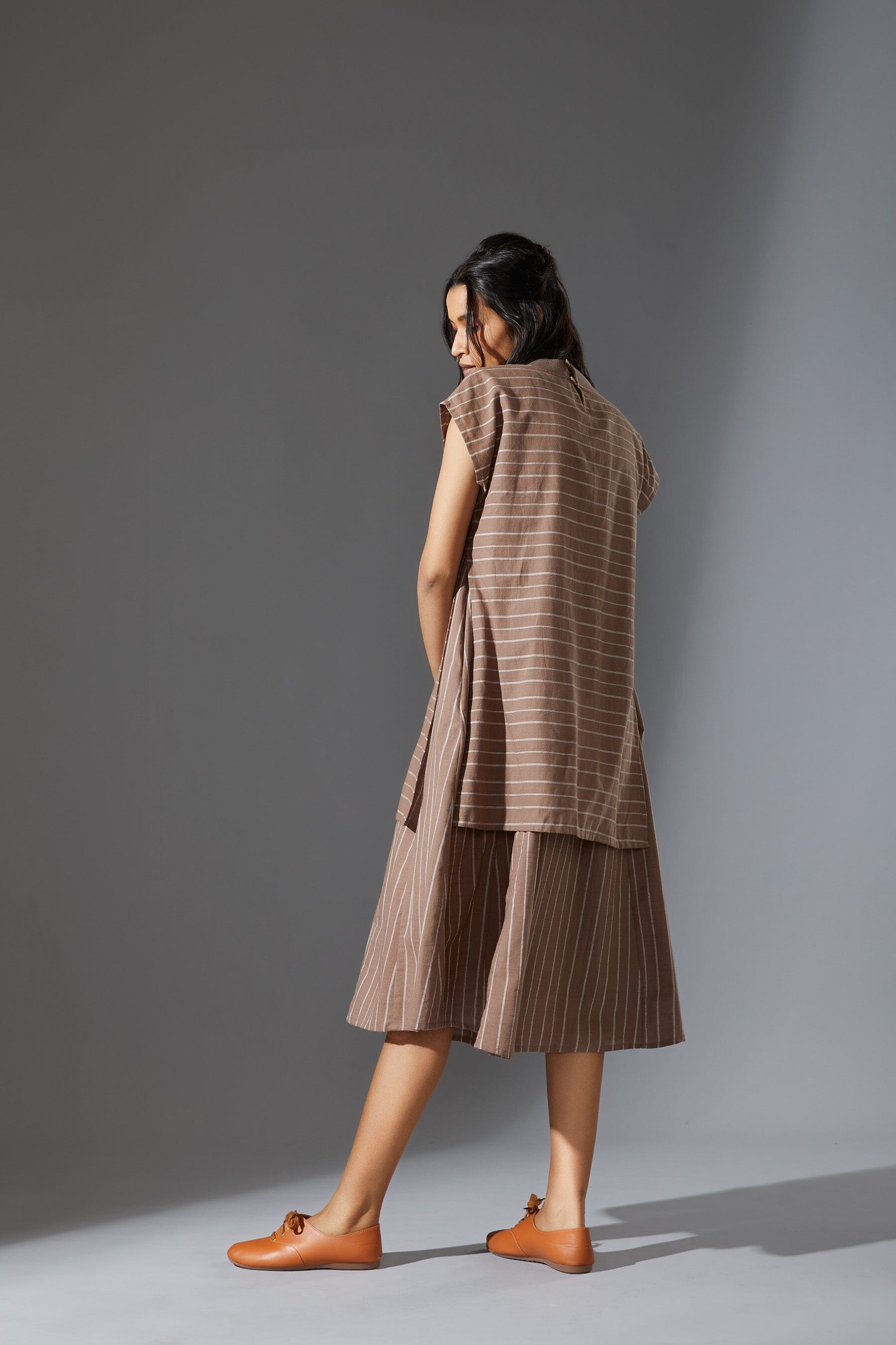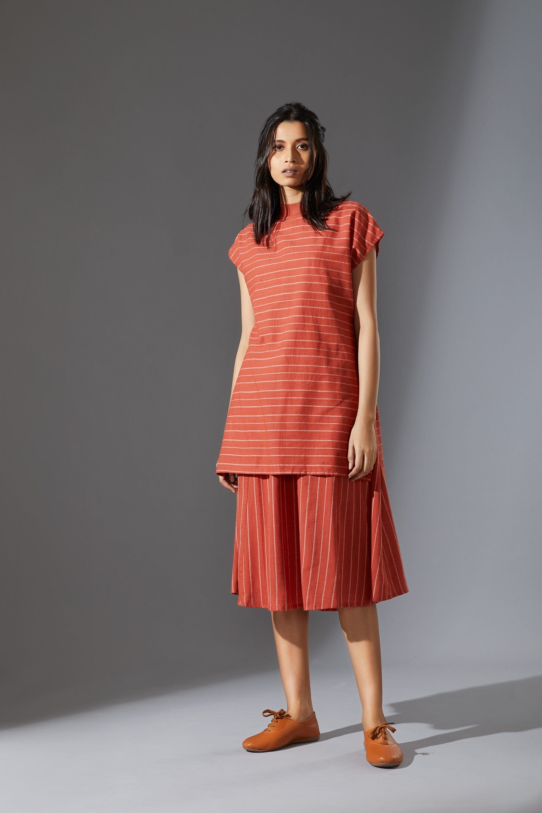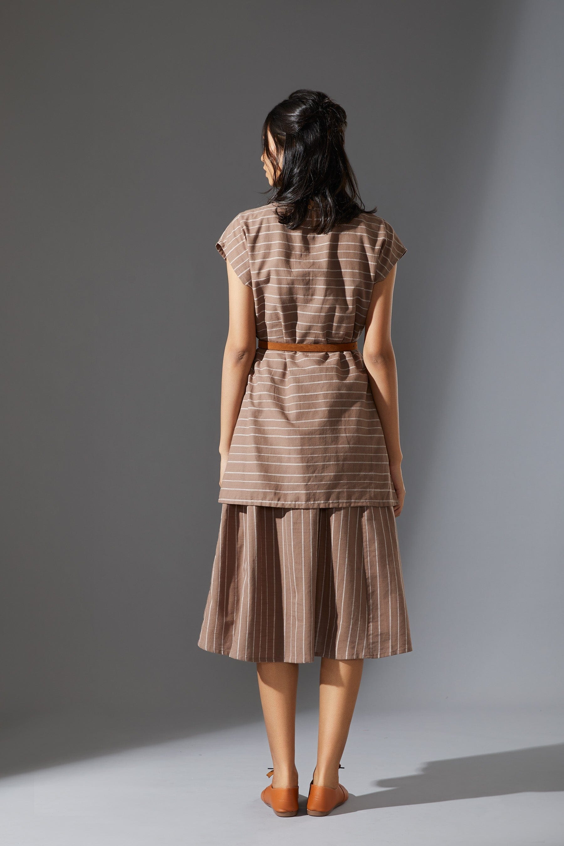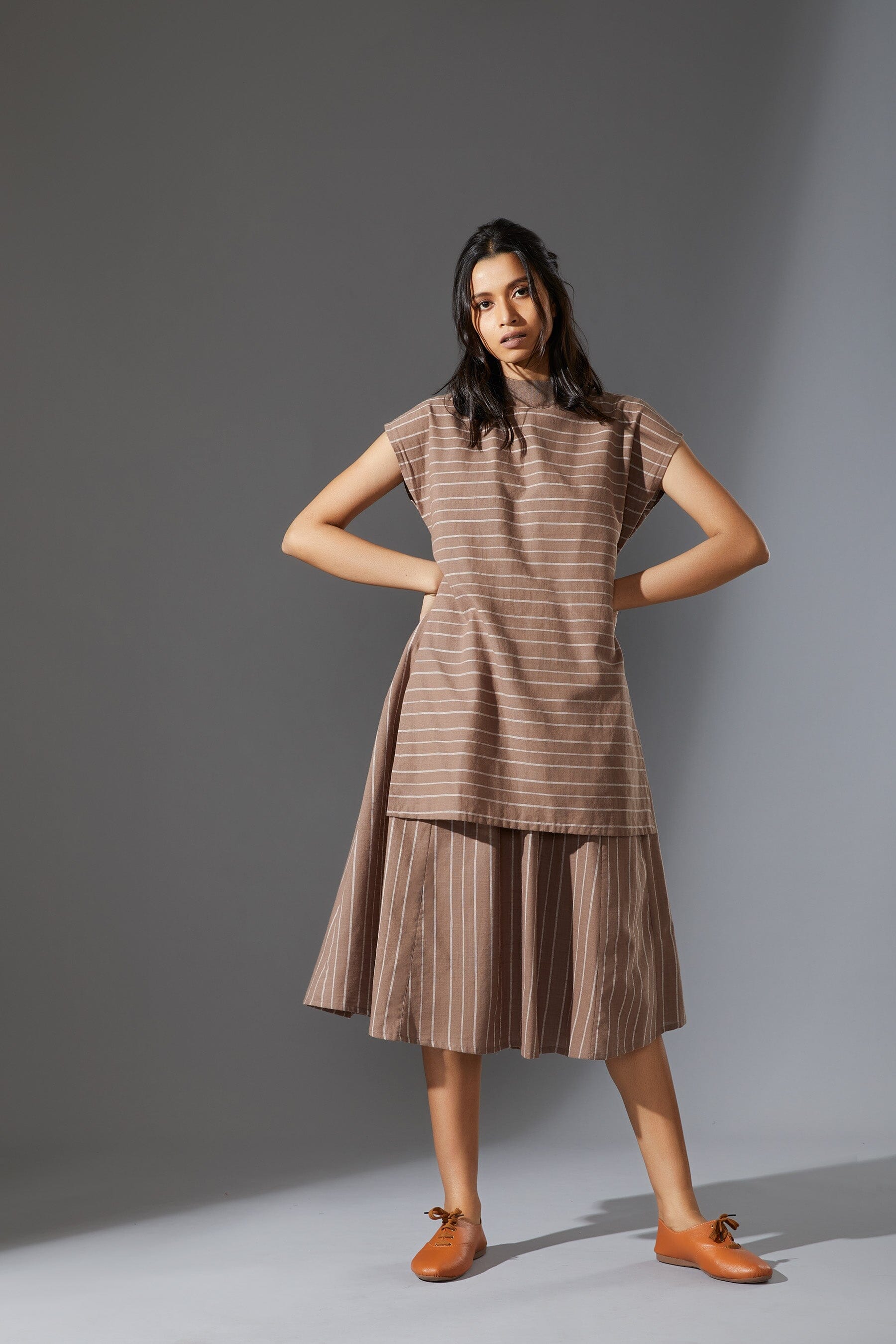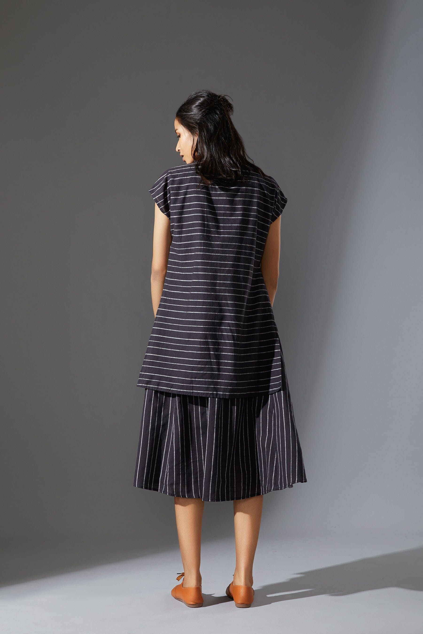 A fun layered dress made with handwoven cotton comes with a ribbed t-shirt neck. Style it with a belt and sneakers to complete the look !!