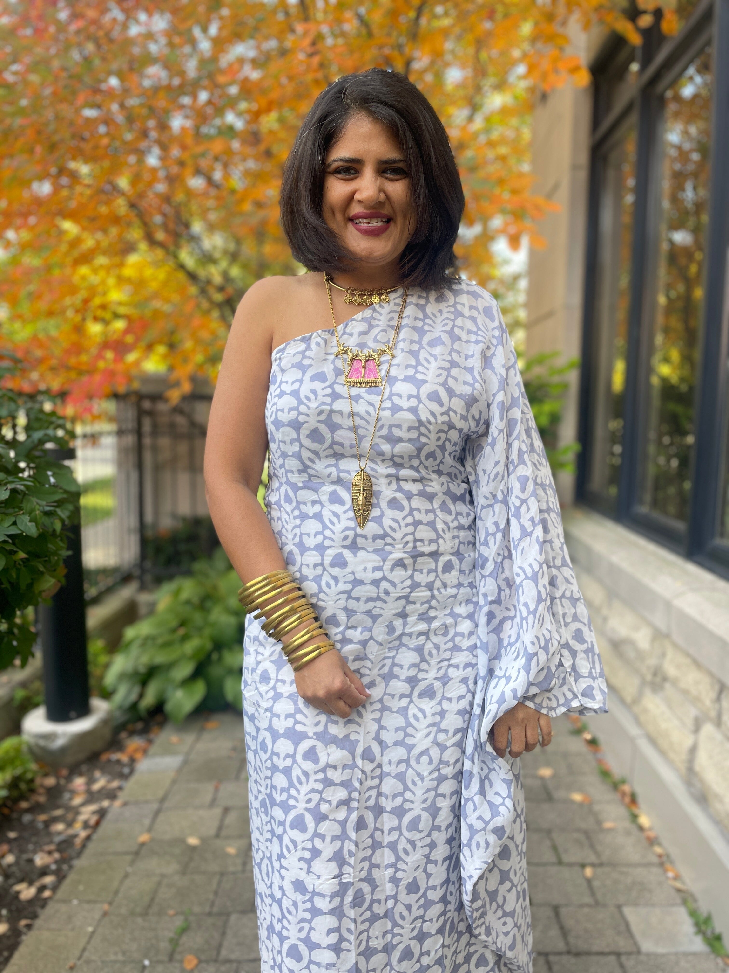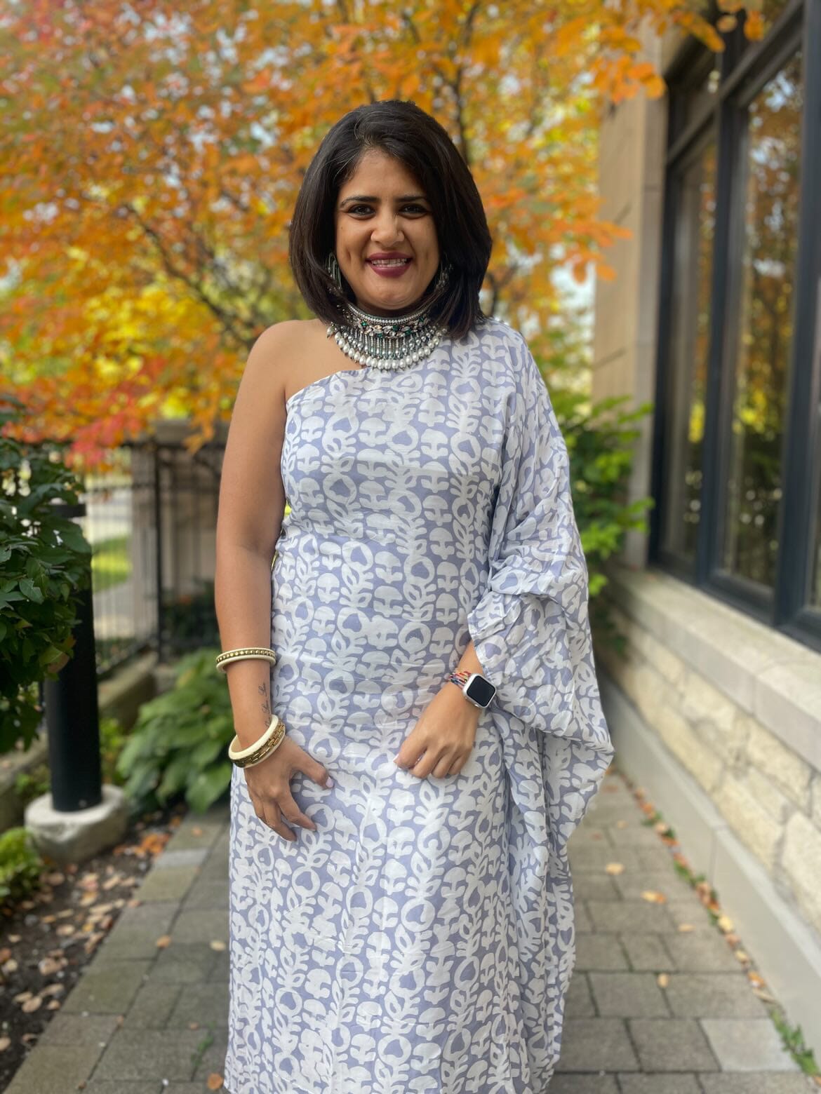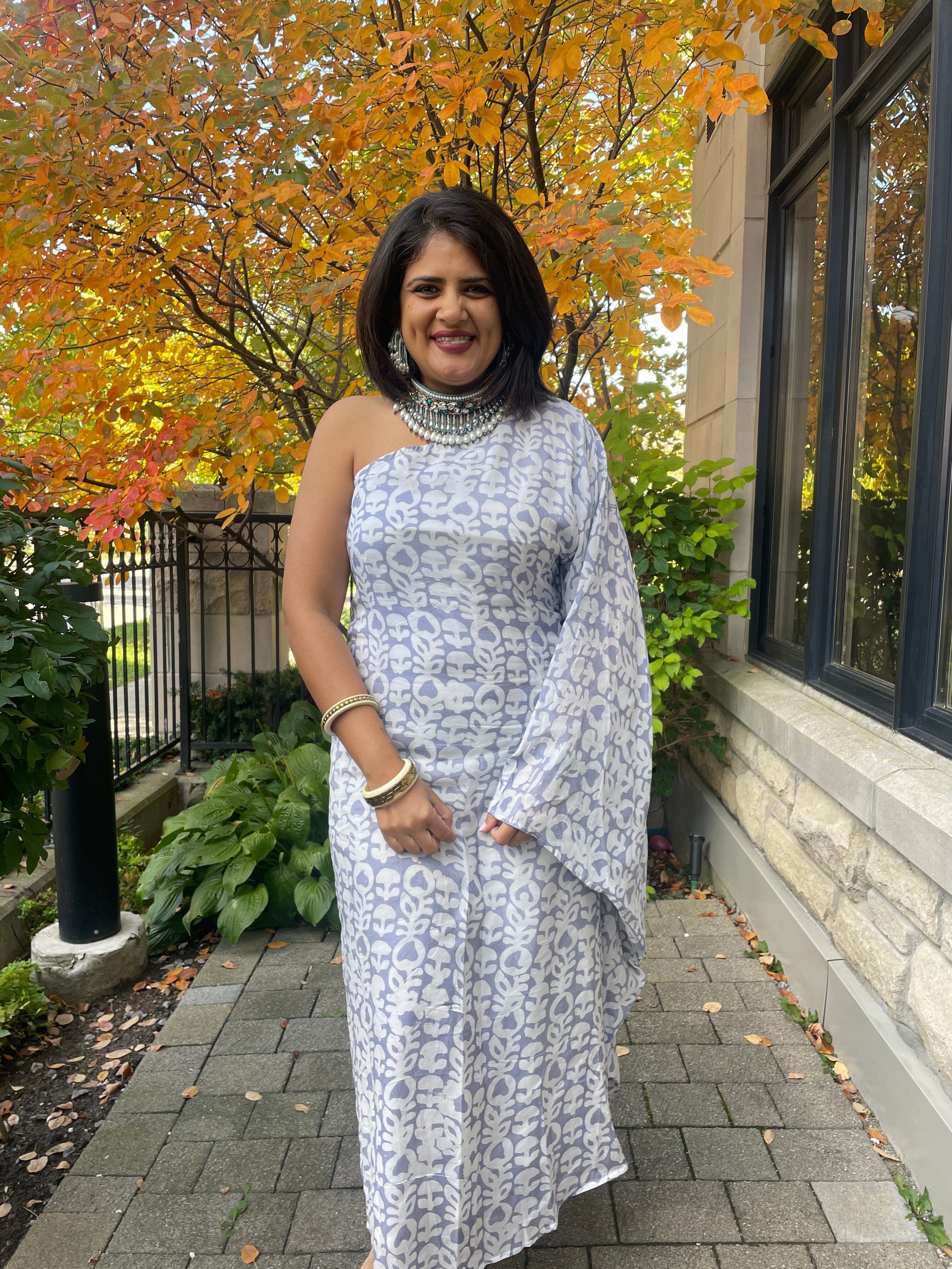 Featuring A Grey One-shoulder Maxi Kaftan In Viscose Modal Base.