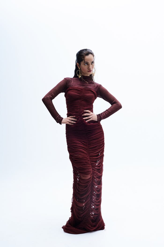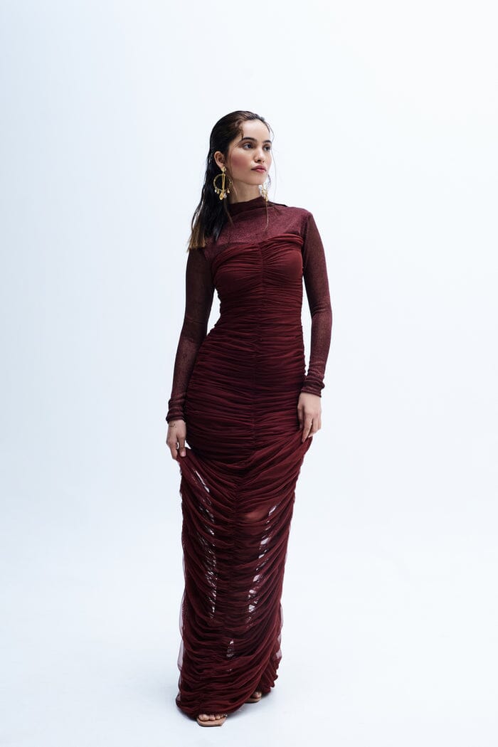 Elevate your wardrobe with our enchanting all over ruched dress, a stunning blend of style and sophistication. Tailored to accentuate your top , this dress features a captivating lycra net ruched fabric, ensuring you make a memorable impression at baby showers, birthdays, brunches, garden parties, and more.