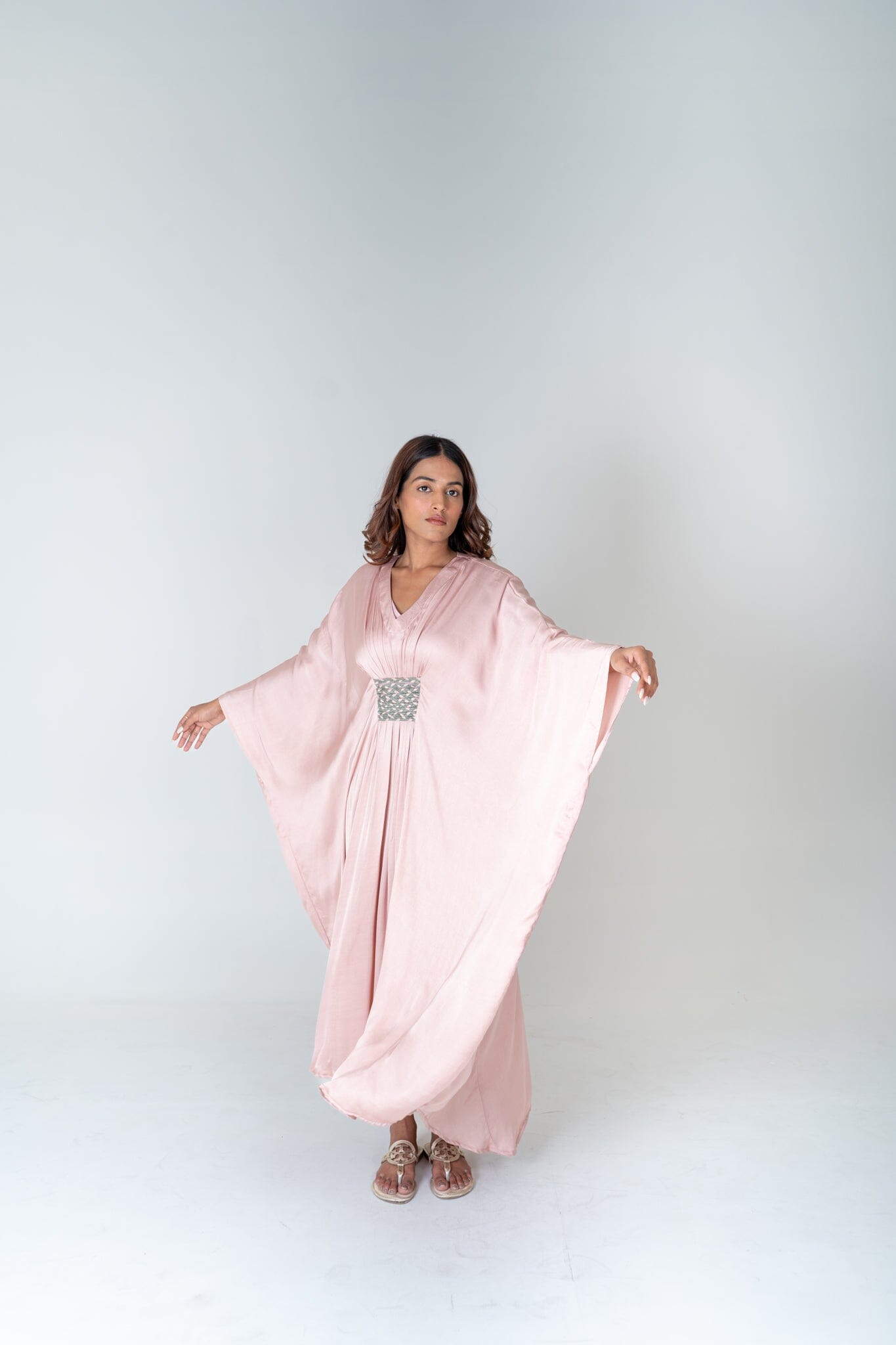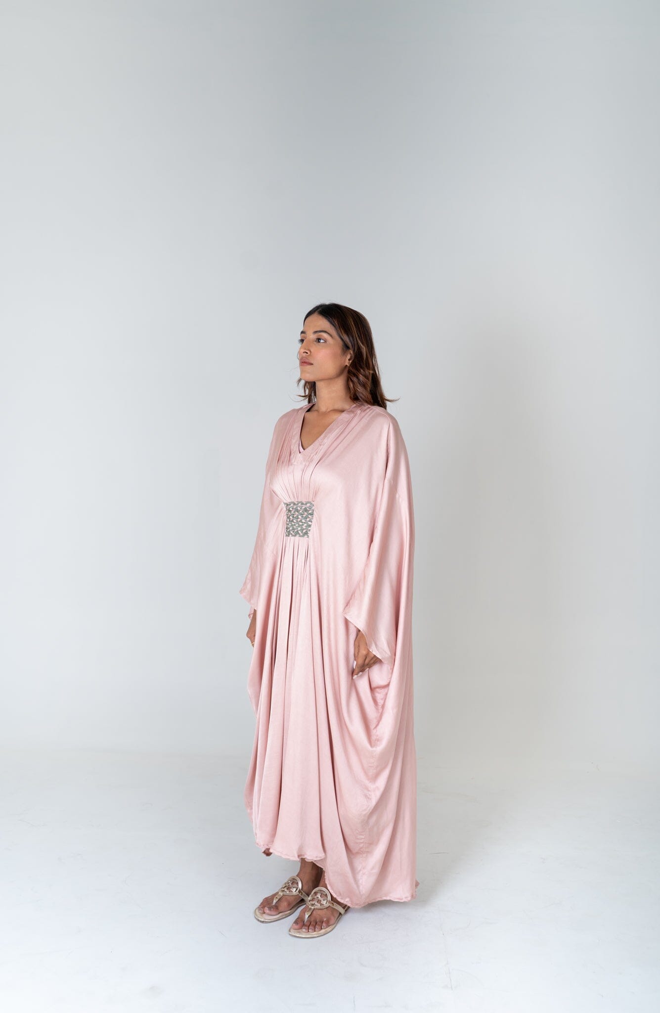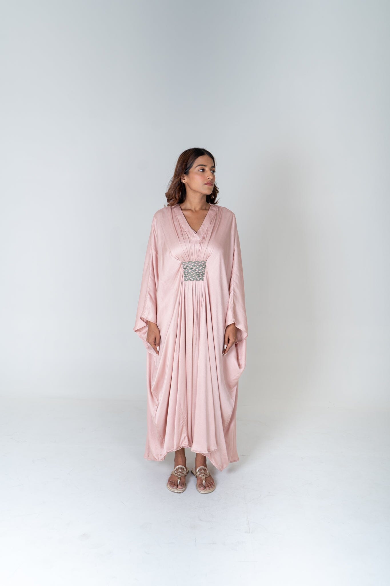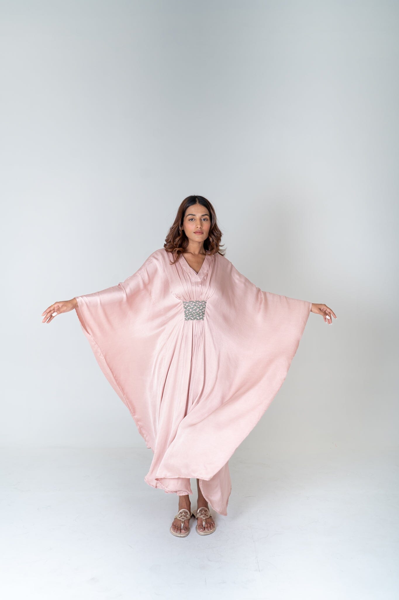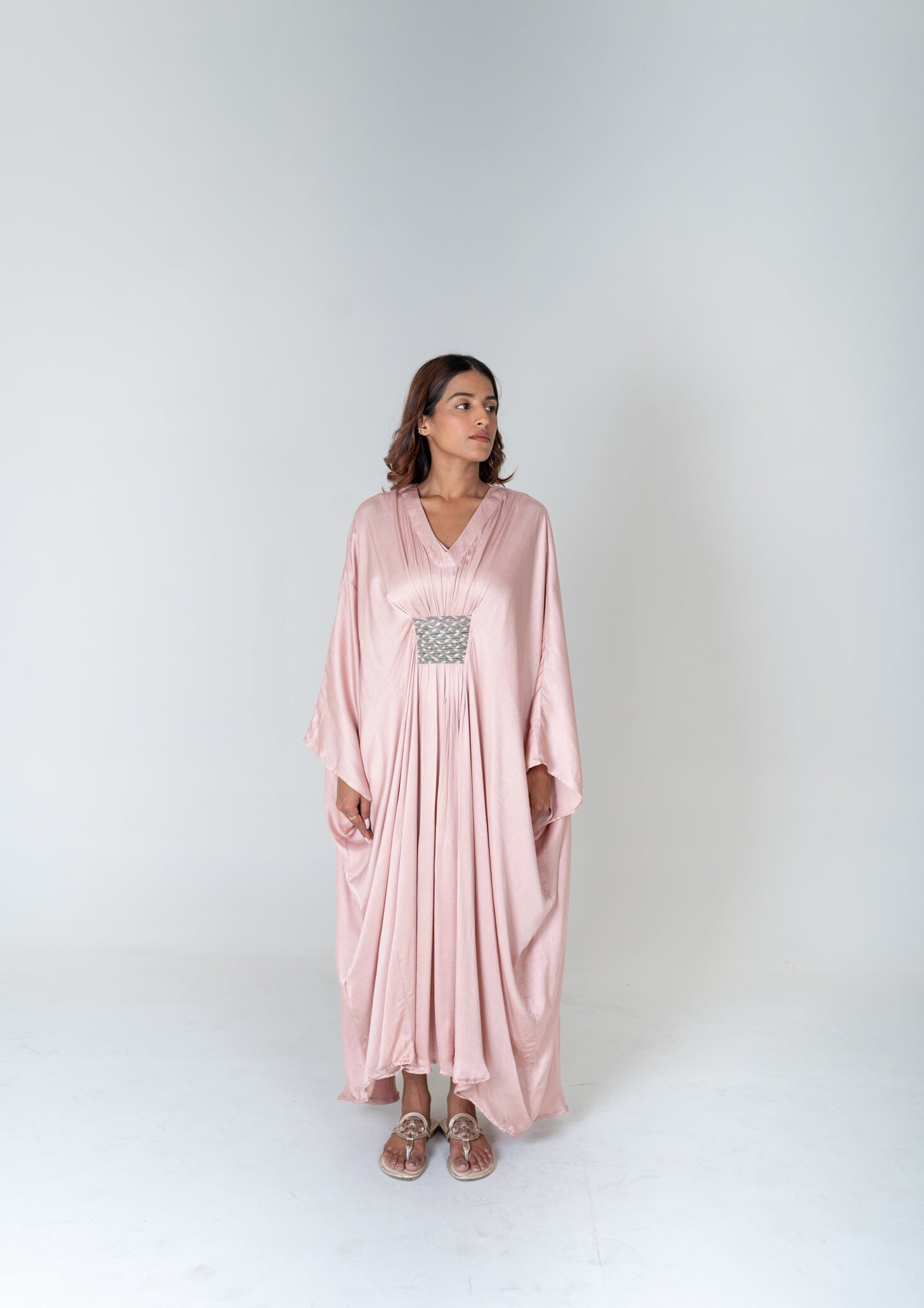 Pink-Green Braided Long Kaftan
