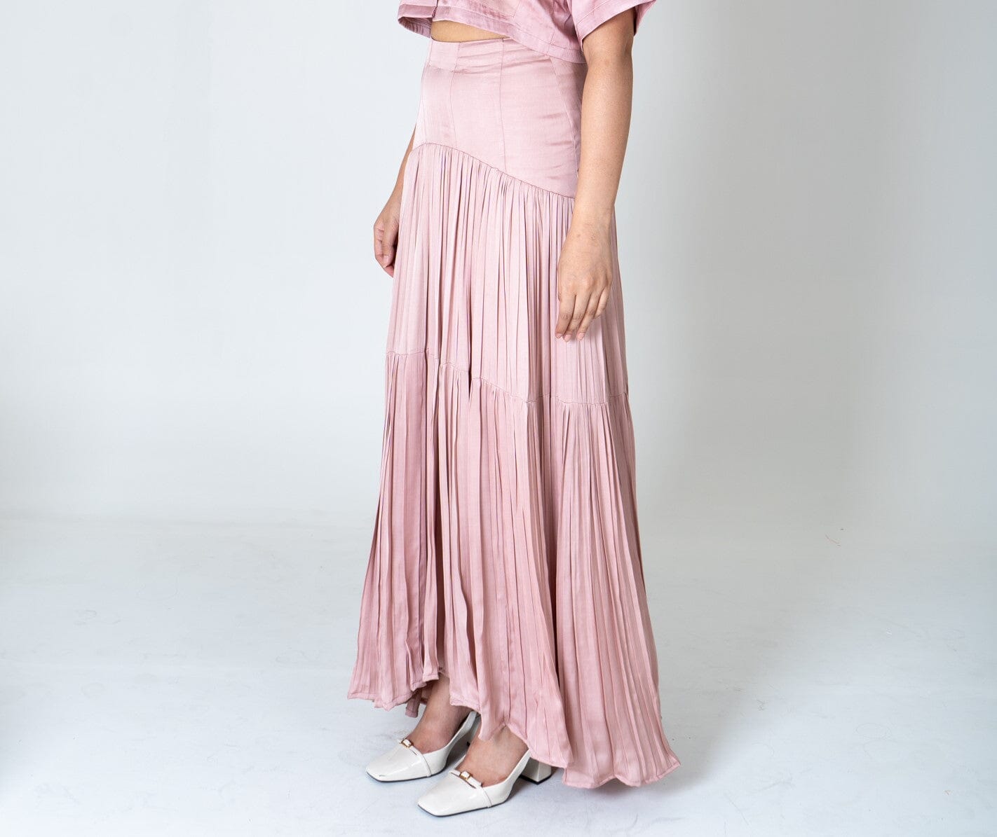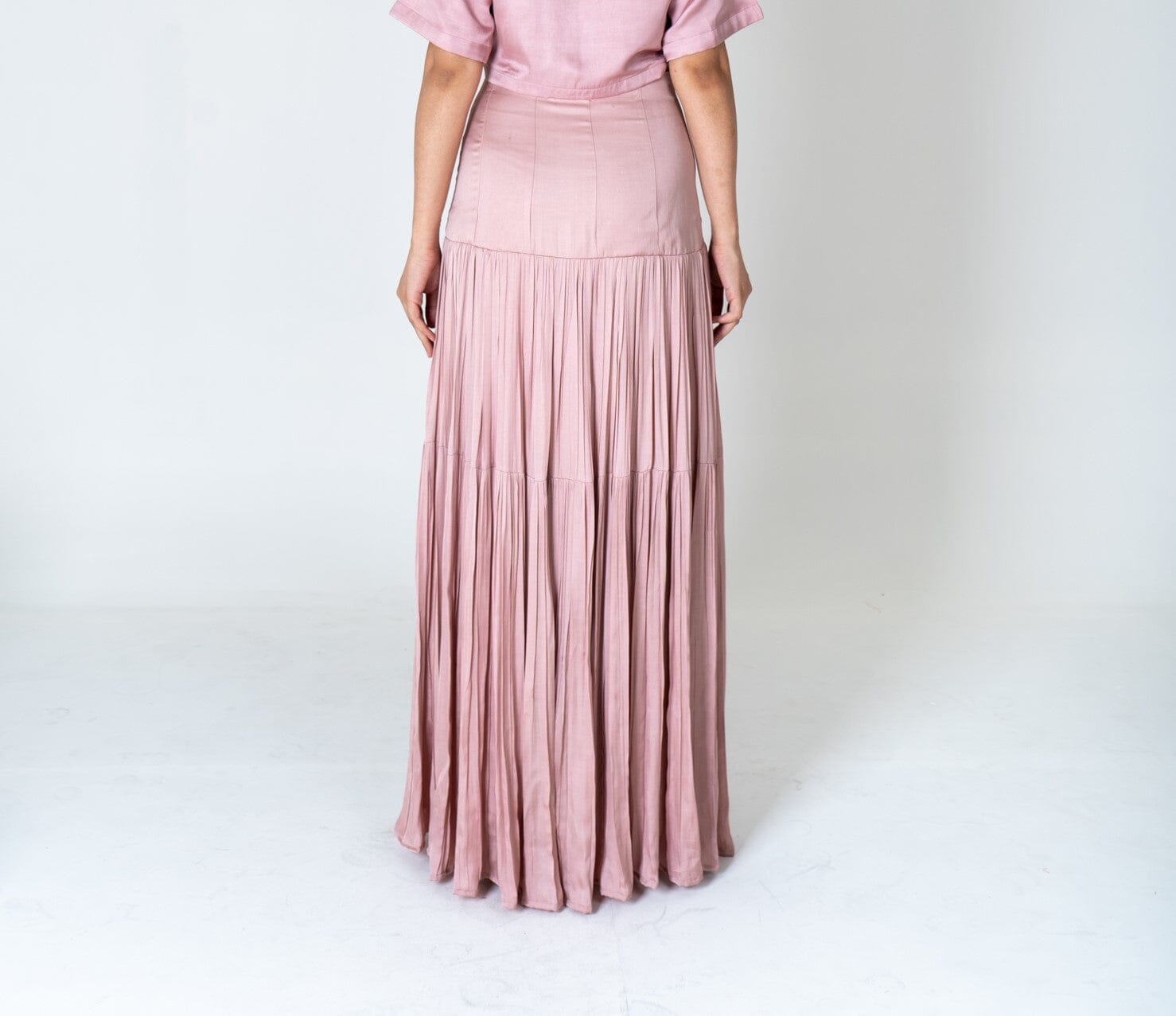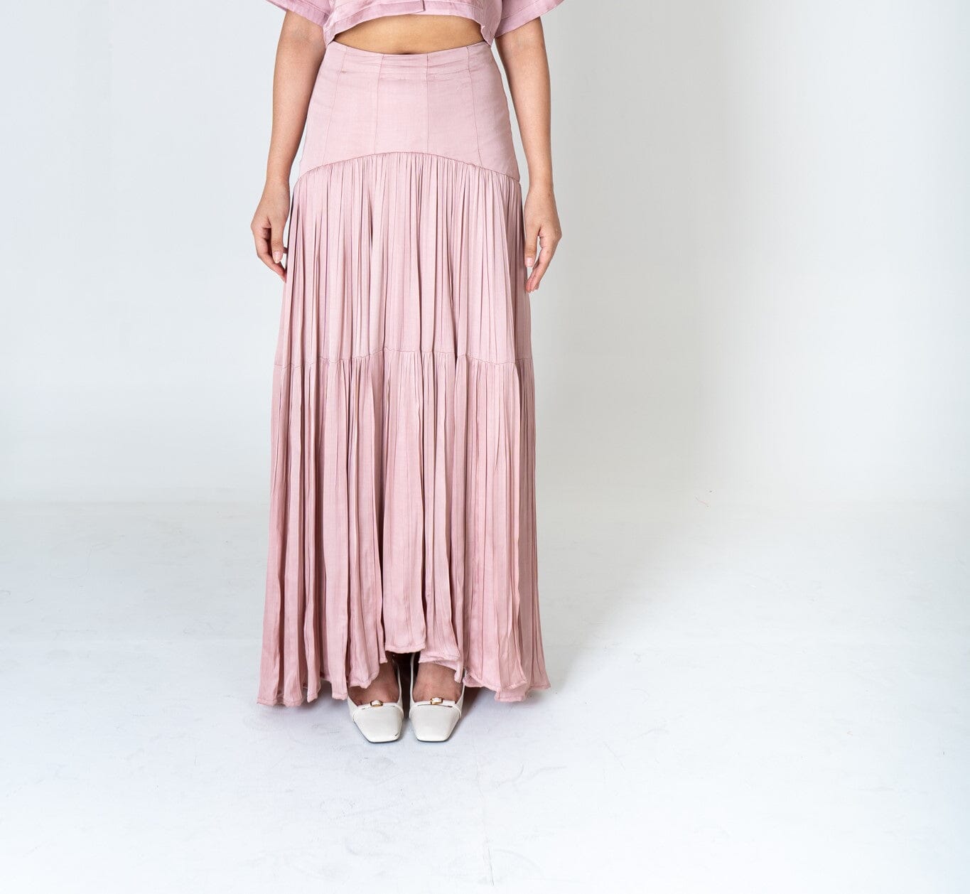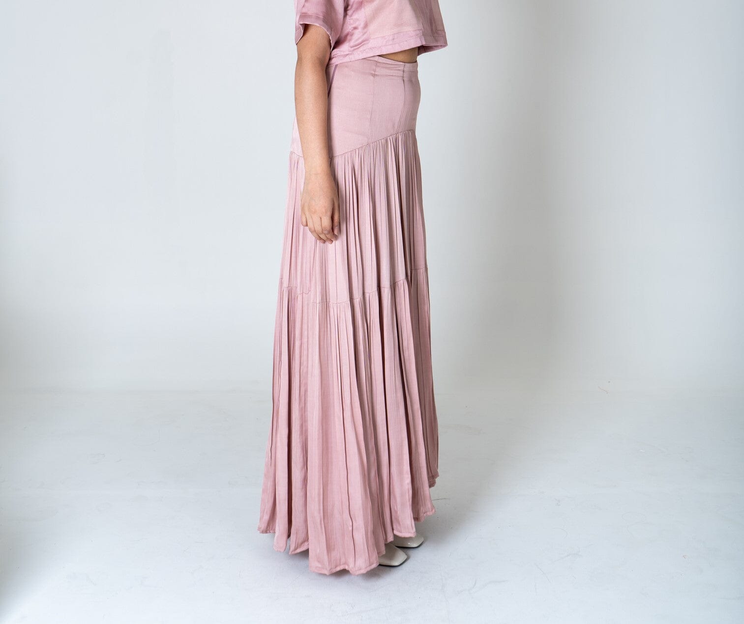 Elevate your fashion game with this pink drop waist skirt made with luxurious Bemberg modal silk, and lined with a smooth pink butter crepe fabric.