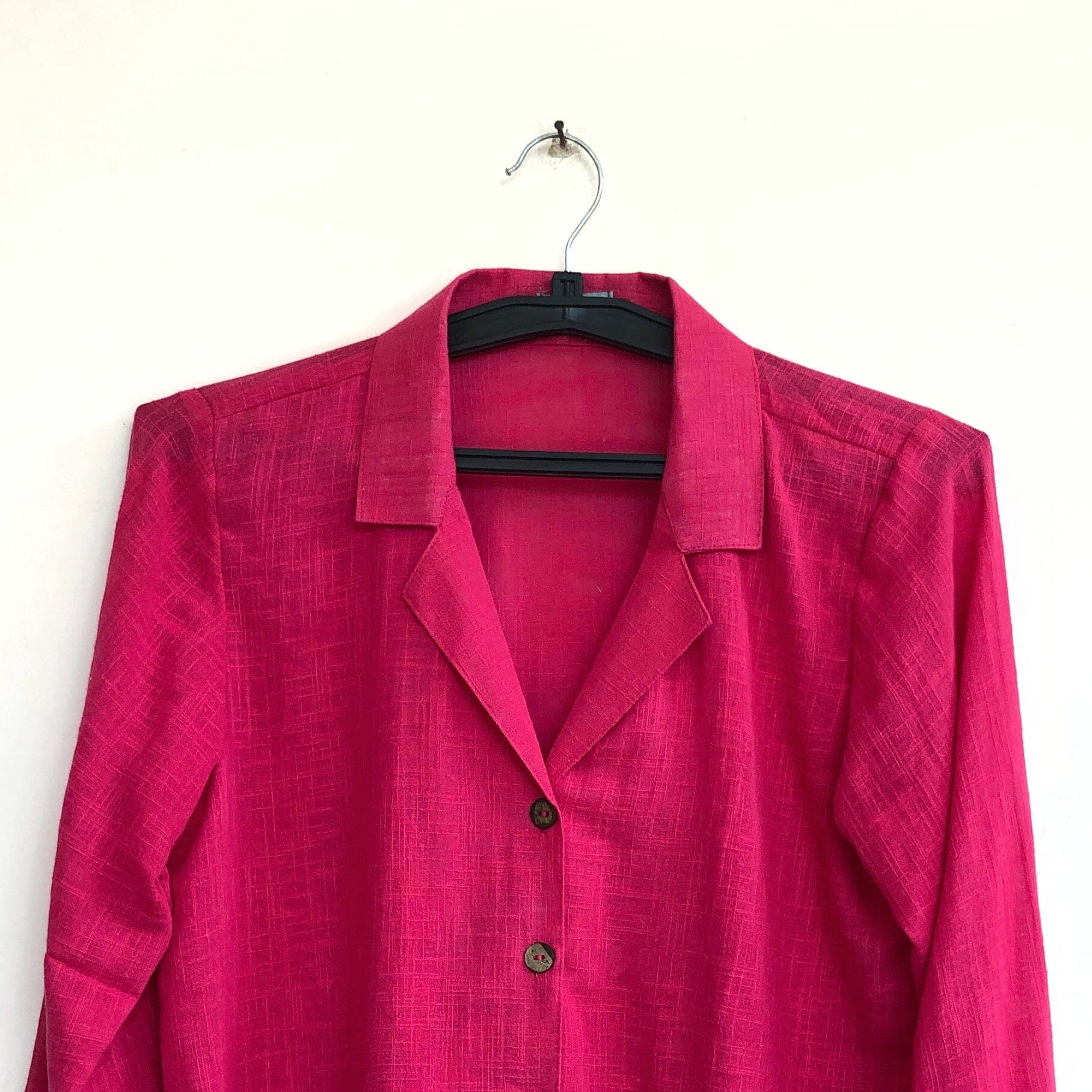 Introducing the 💕 "Pretty Pink Shirt" 💕 – the perfect blend of elegance and sophistication! Made with high-quality cotton fabric, this shirt features a notched collar and full sleeves that give it a refined look. The button placket adds a touch of classic charm and makes it easy to wear. The vibrant pink color is sure to make a statement and add a pop of color to any outfit. The "Pretty Pink Shirt" is versatile and can be dressed up or down depending on the occasion. Wear it with a skirt or trousers for a professional look or pair it with jeans for a casual day out. Whether you're heading to the office or brunch with friends, this shirt is sure to turn heads.