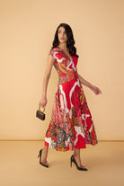 Abstract Placement Print, V Neck Sleevless Midi Dress