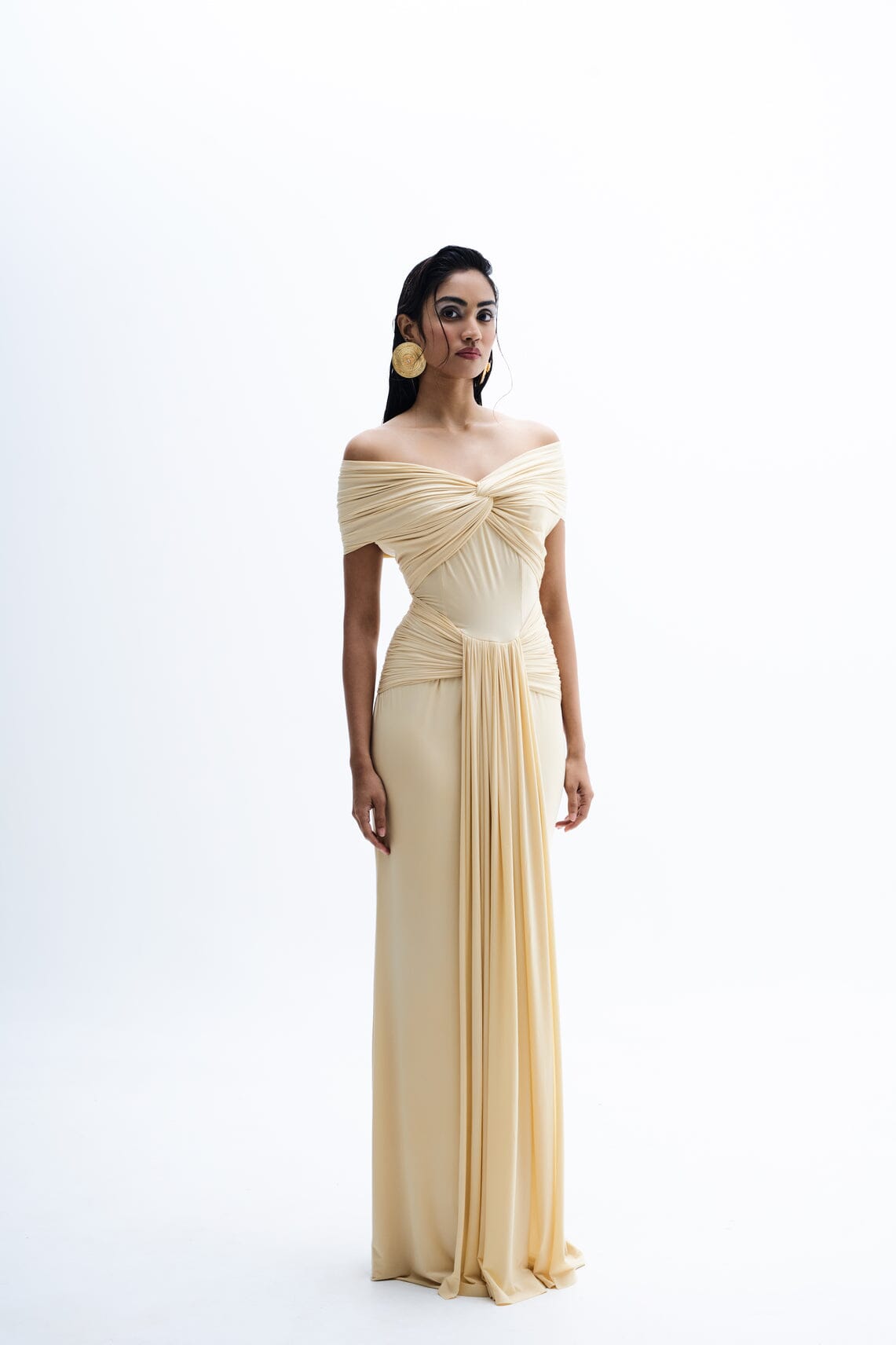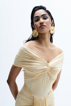 Crafted from lycra, this butter yellow colour dress features elegant details for a relaxed yet chic look. Perfect for creating that iconic vibe, it's ideal as both a fun vacation outfit and a stylish brunch dress. Add drama and dimension to your wardrobe with this versatile piece!