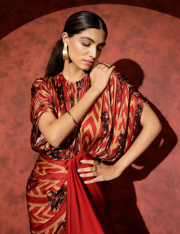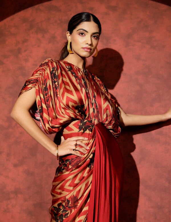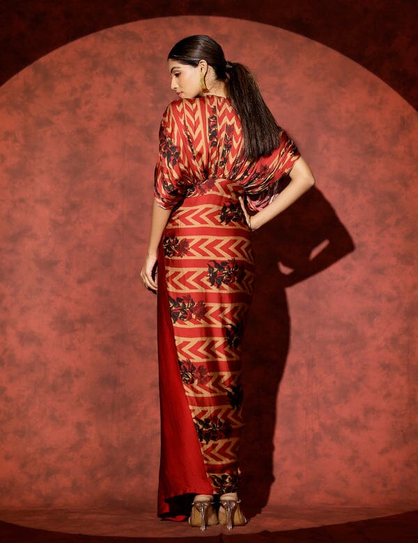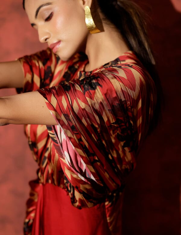 Neelam Color Block Asymmetric Top Paired With Side Pleated Pants