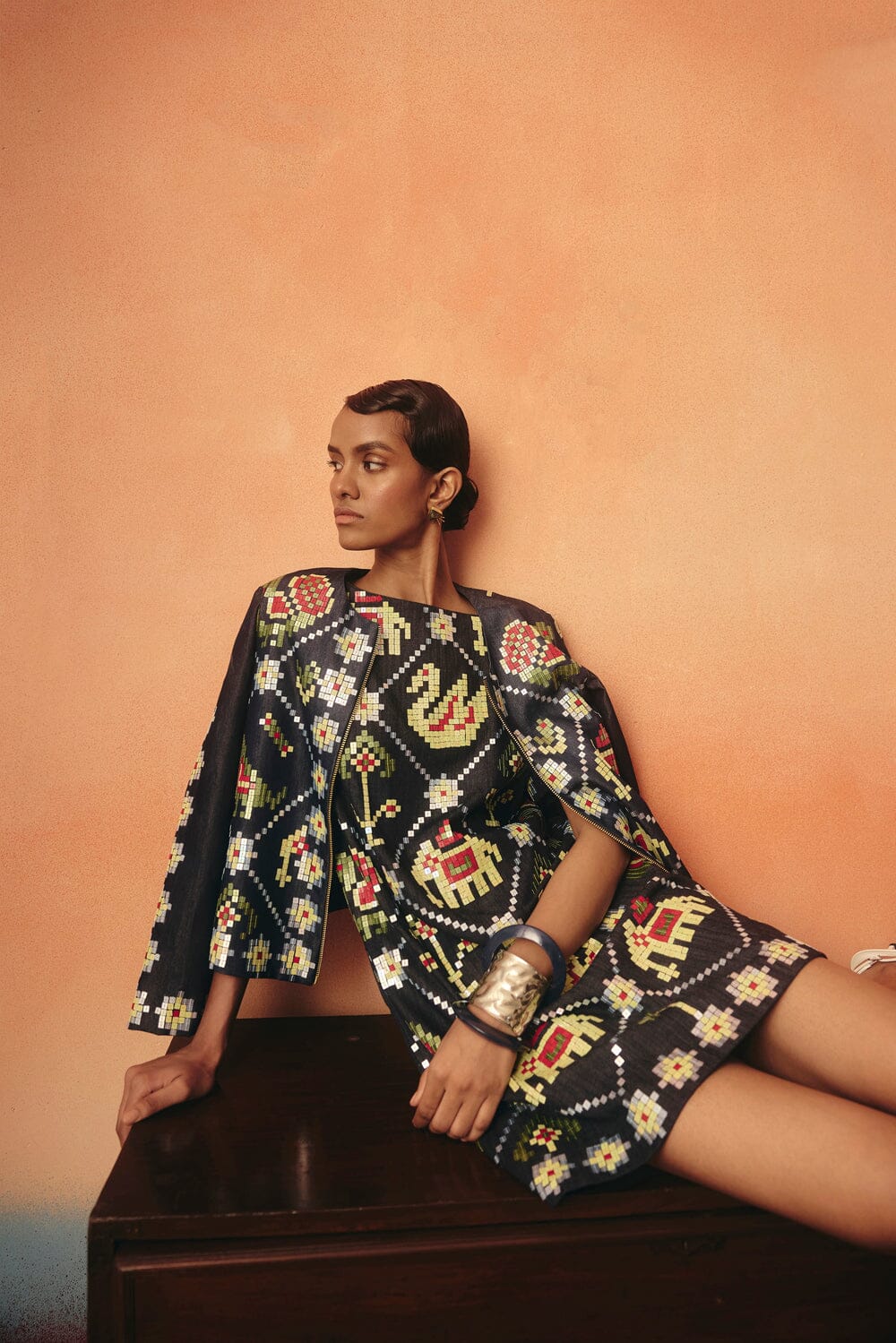 Gulzar Black Floral Printed Blouse With Lehenga And Dupatta Set of 3
