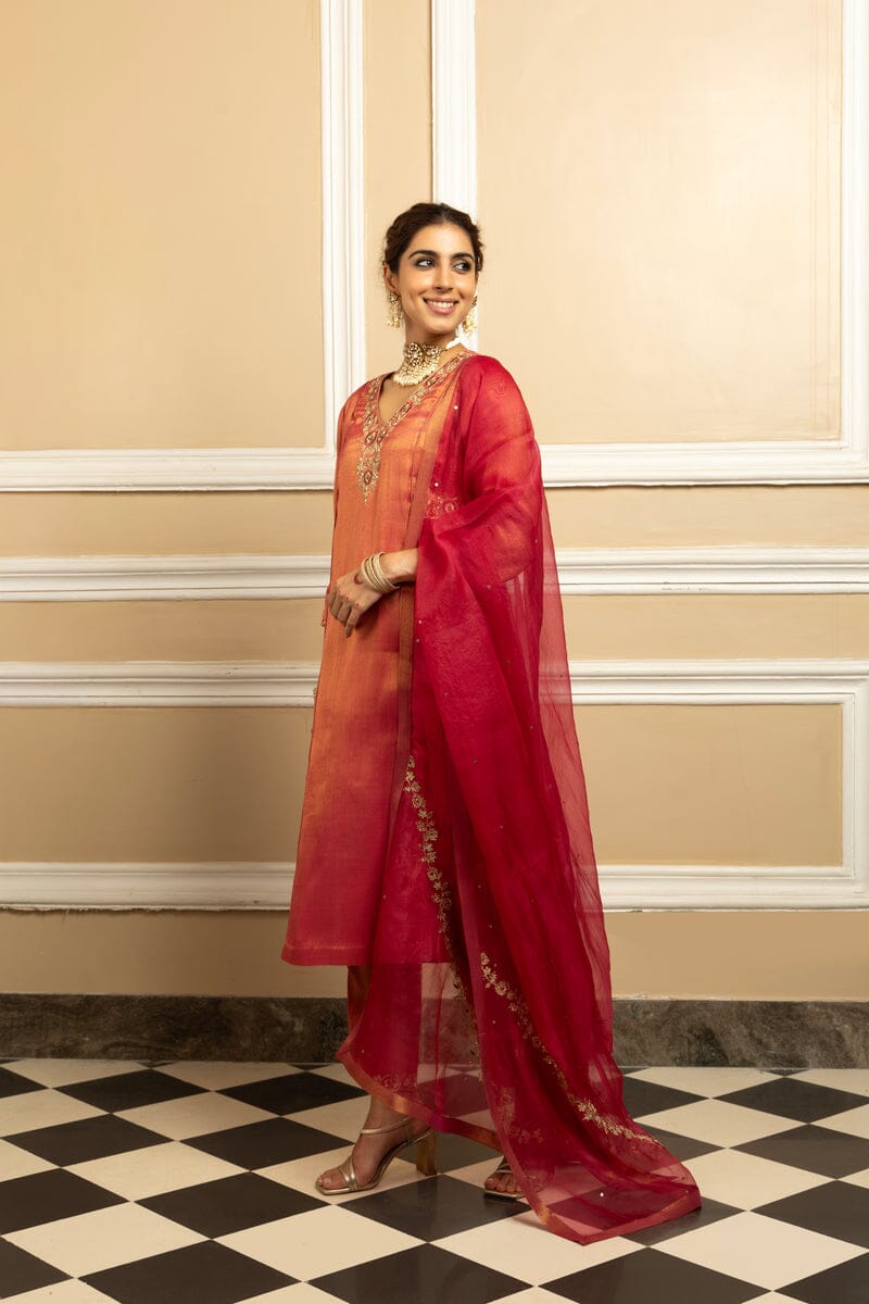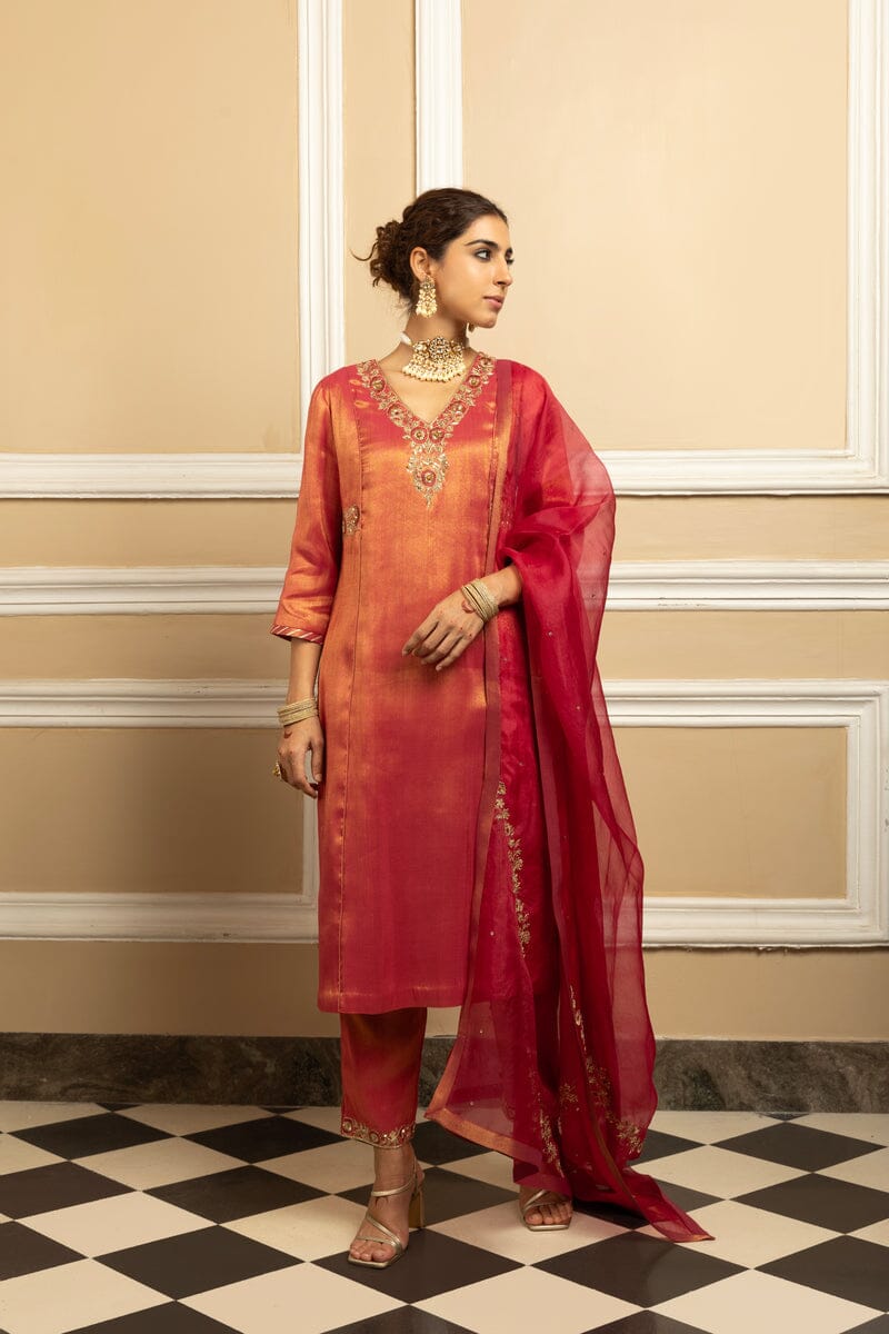 GULBAHAR GREEN FLORAL PRINTED TISSUE KURTA SET