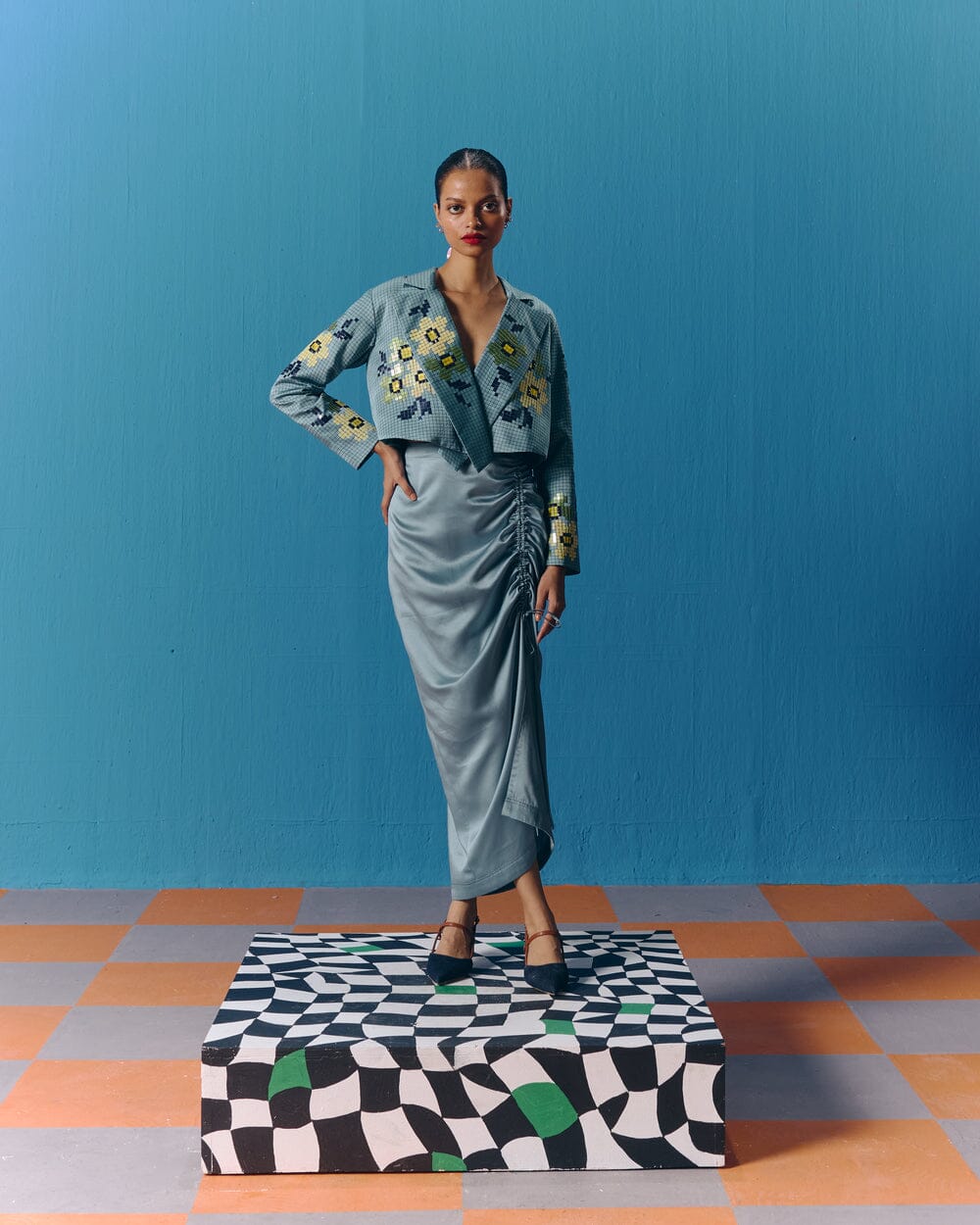 Mustard Spade EMB Bluff Jacket Set (2 PCS)