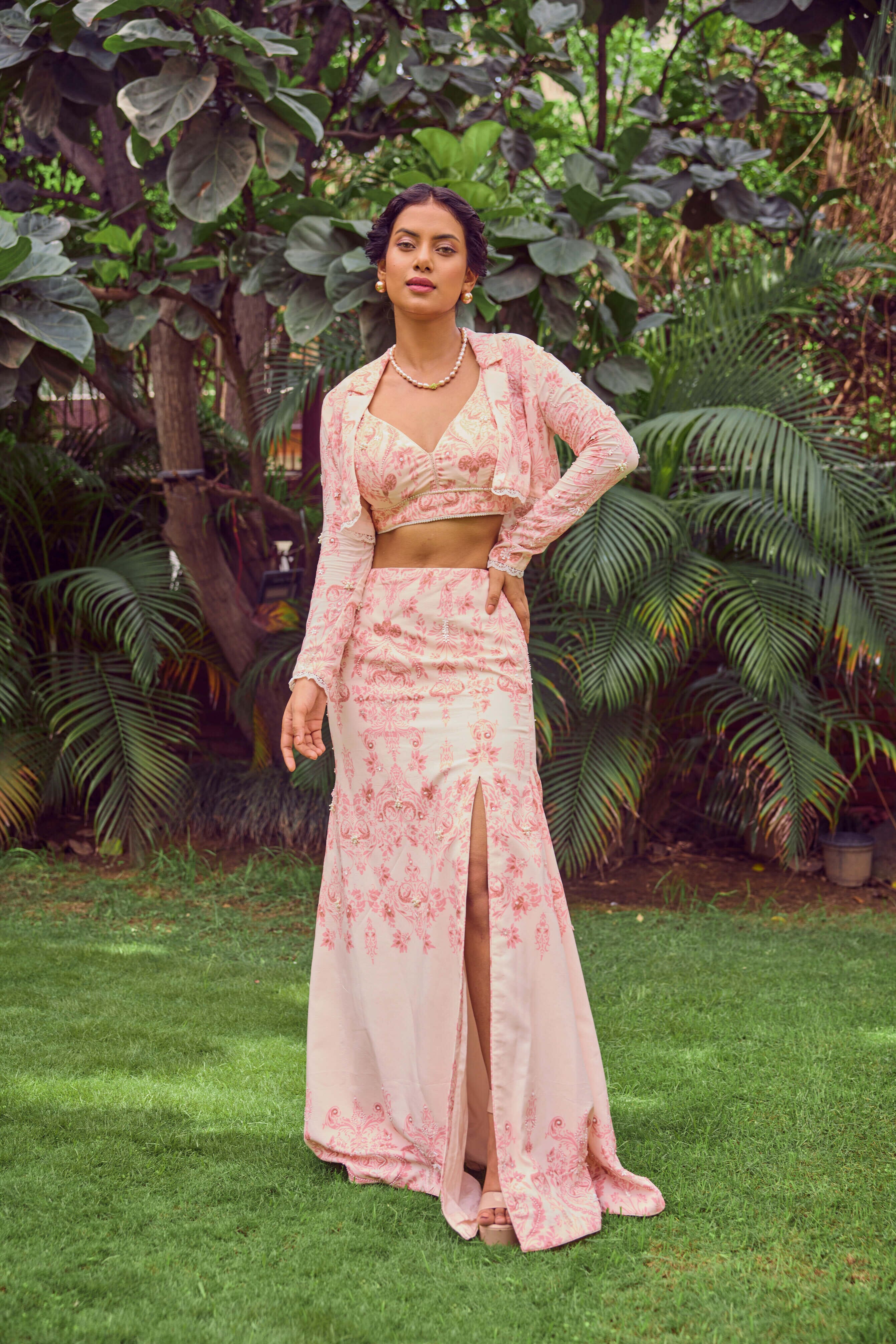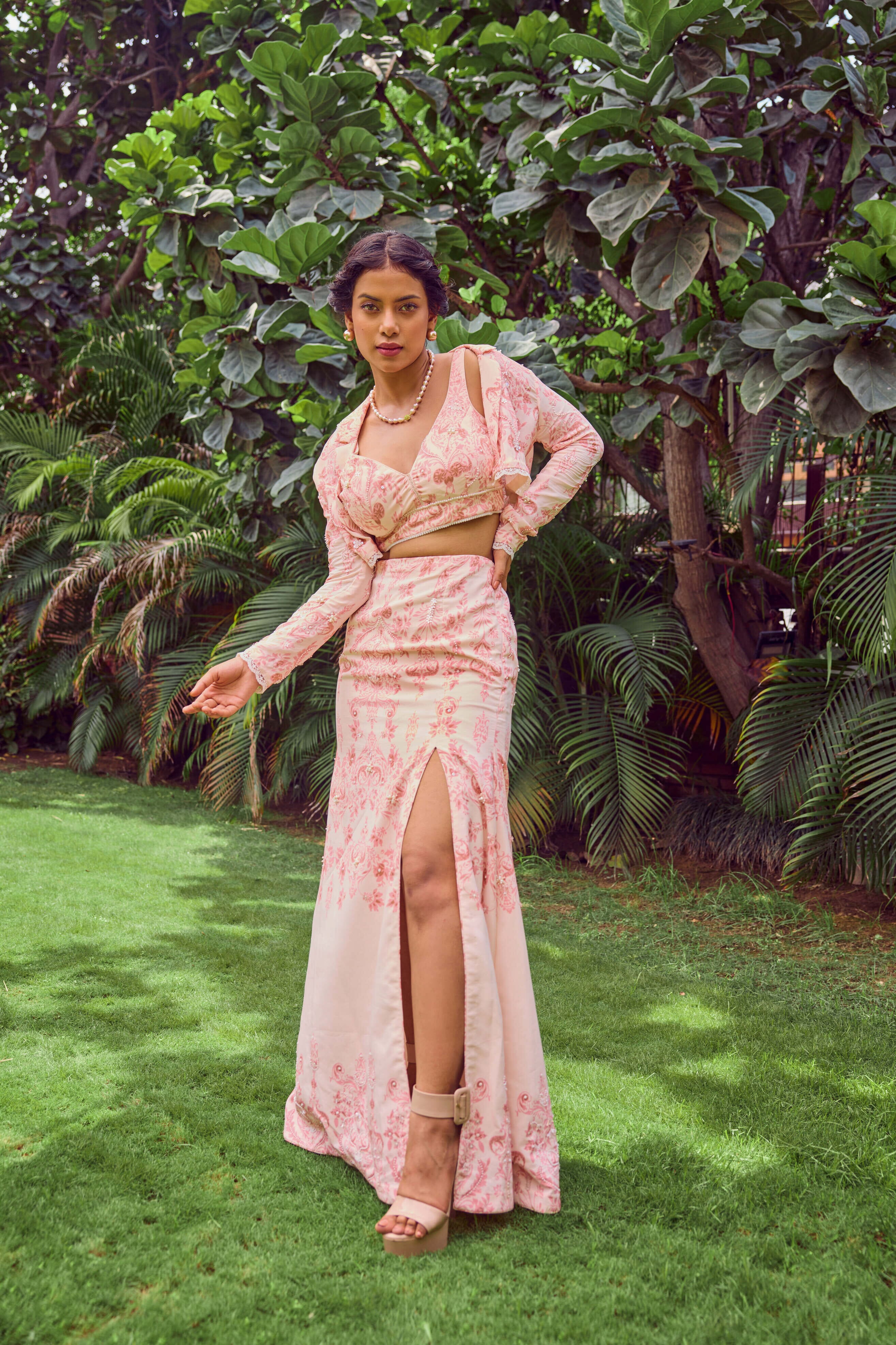 FLORAL CAPE SASS BUSTIER SKIRT SET