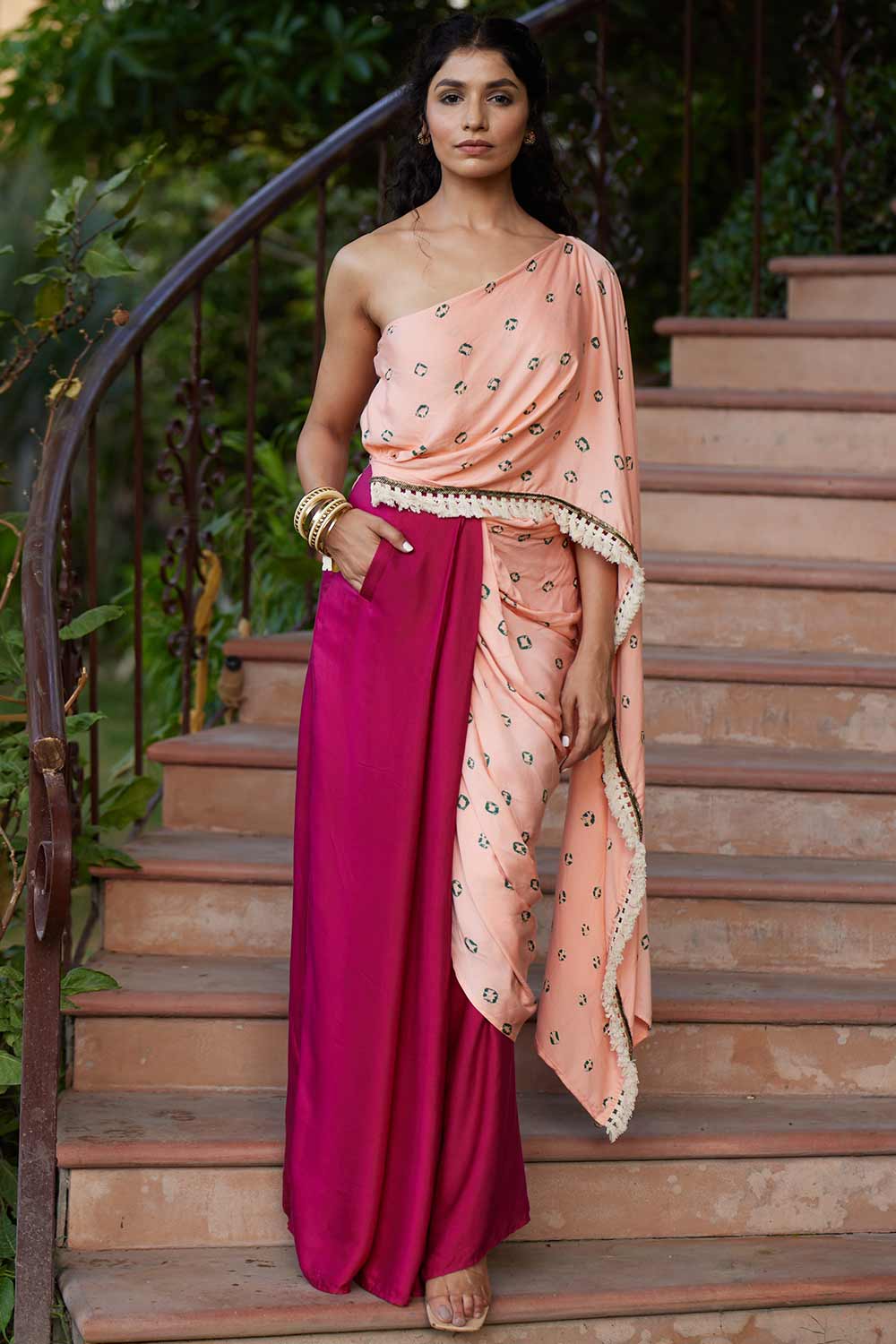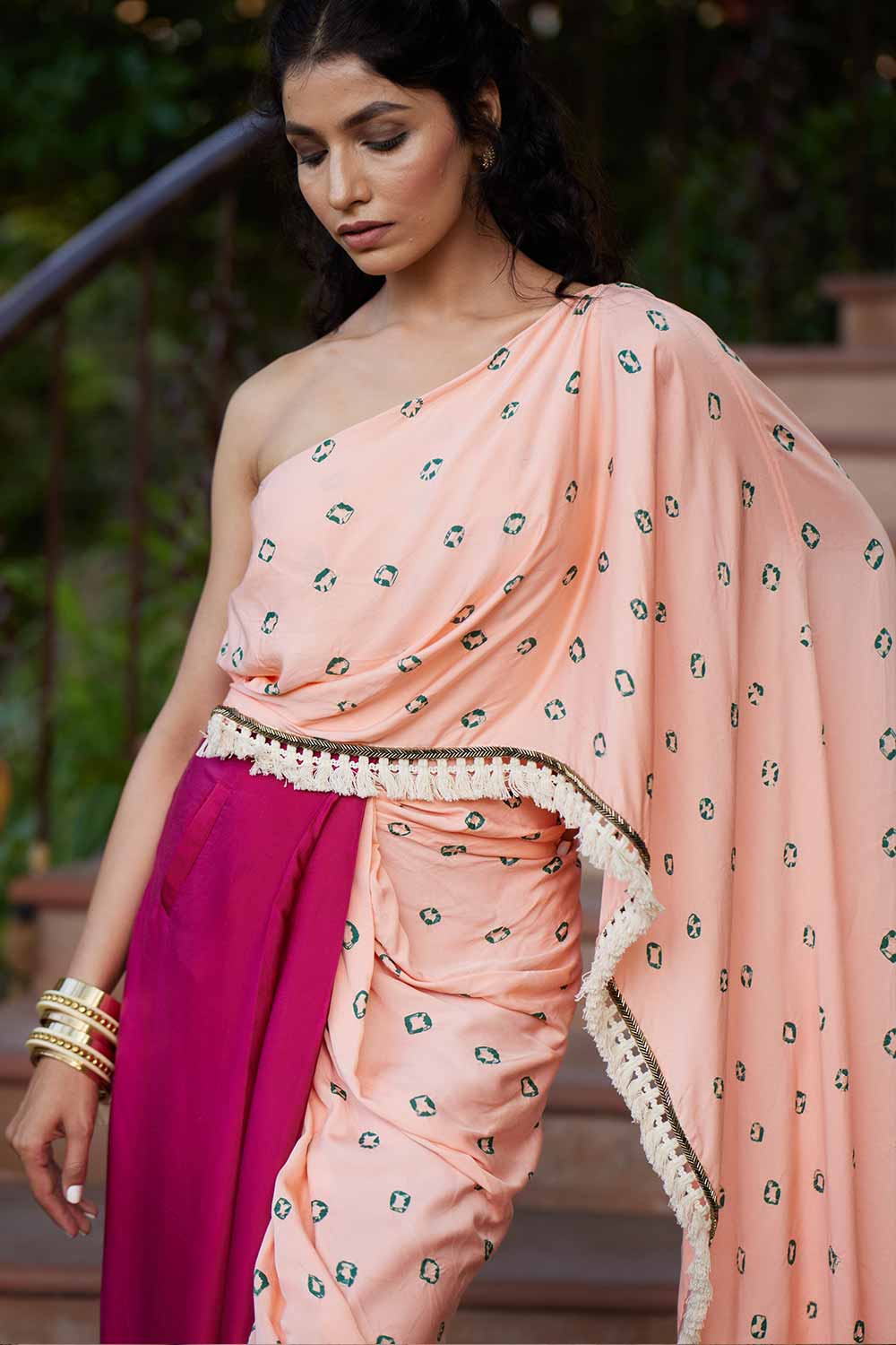 ¿Quieres lucir convencional pero con un toque diferente? Entonces este sari conceptual bandhej es la elección perfecta para ti.