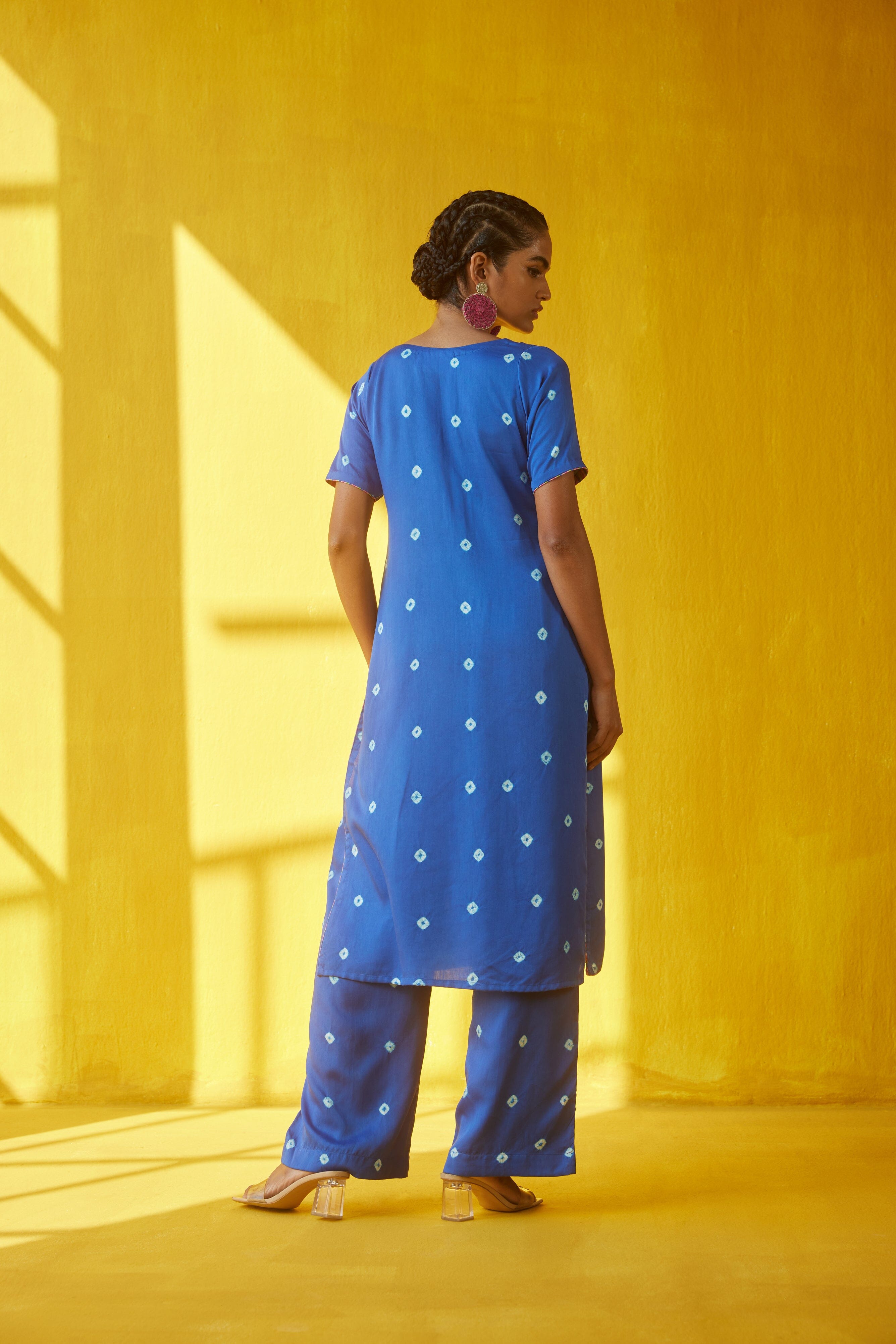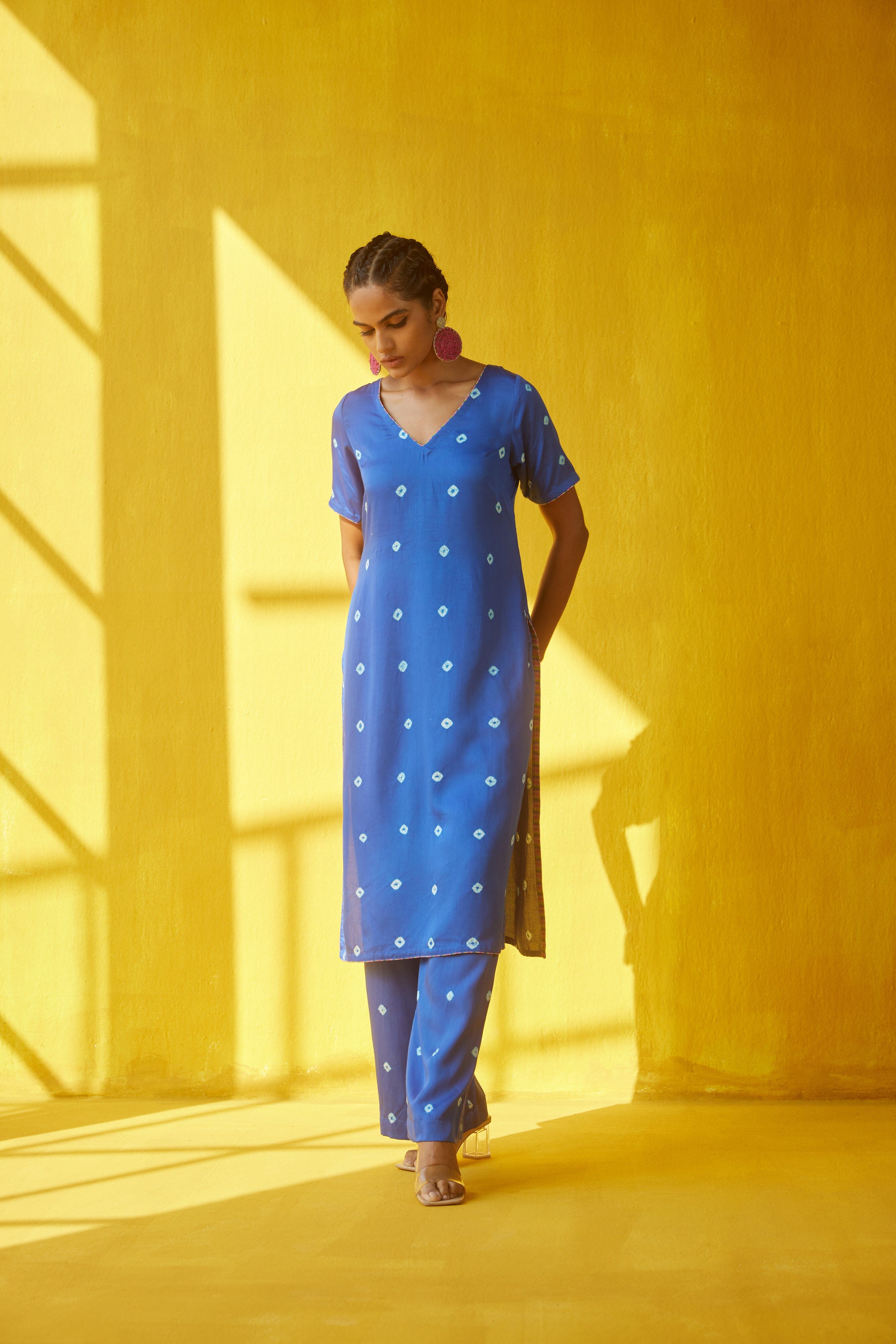 Kurta presenta un cómodo corte recto con escote en V y media manga.