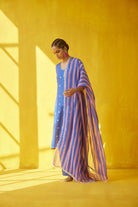 El cuello, el dobladillo y las mangas de Kurta están realzados con ribetes a rayas estampados a mano.