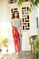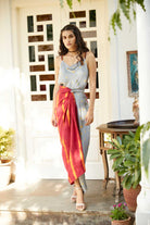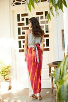 Vístete para impresionar con este increíblemente elegante vestido cruzado de Bandhej y Leheriya con tirantes finos.