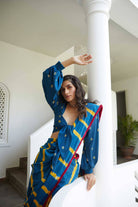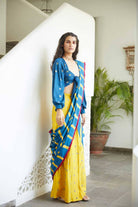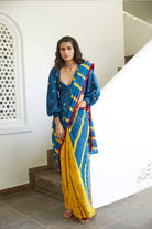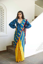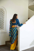 Ponte en marcha con nuestro conjunto de sari pre drapeado Bandhej que inducirá una sensación de frescura a todo tu look.