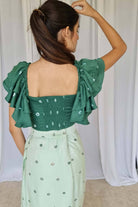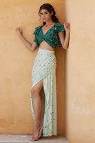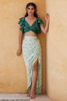 Si tu estilo es vestir elegante pero sin esfuerzo, entonces nuestra falda drapeada bandhej con top es la elección perfecta para ti.